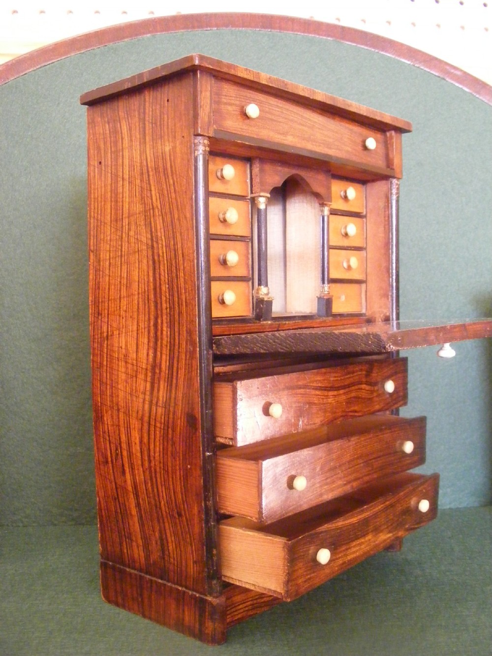 Miniature Faux Rosewood Secretaire Abatant c.1920