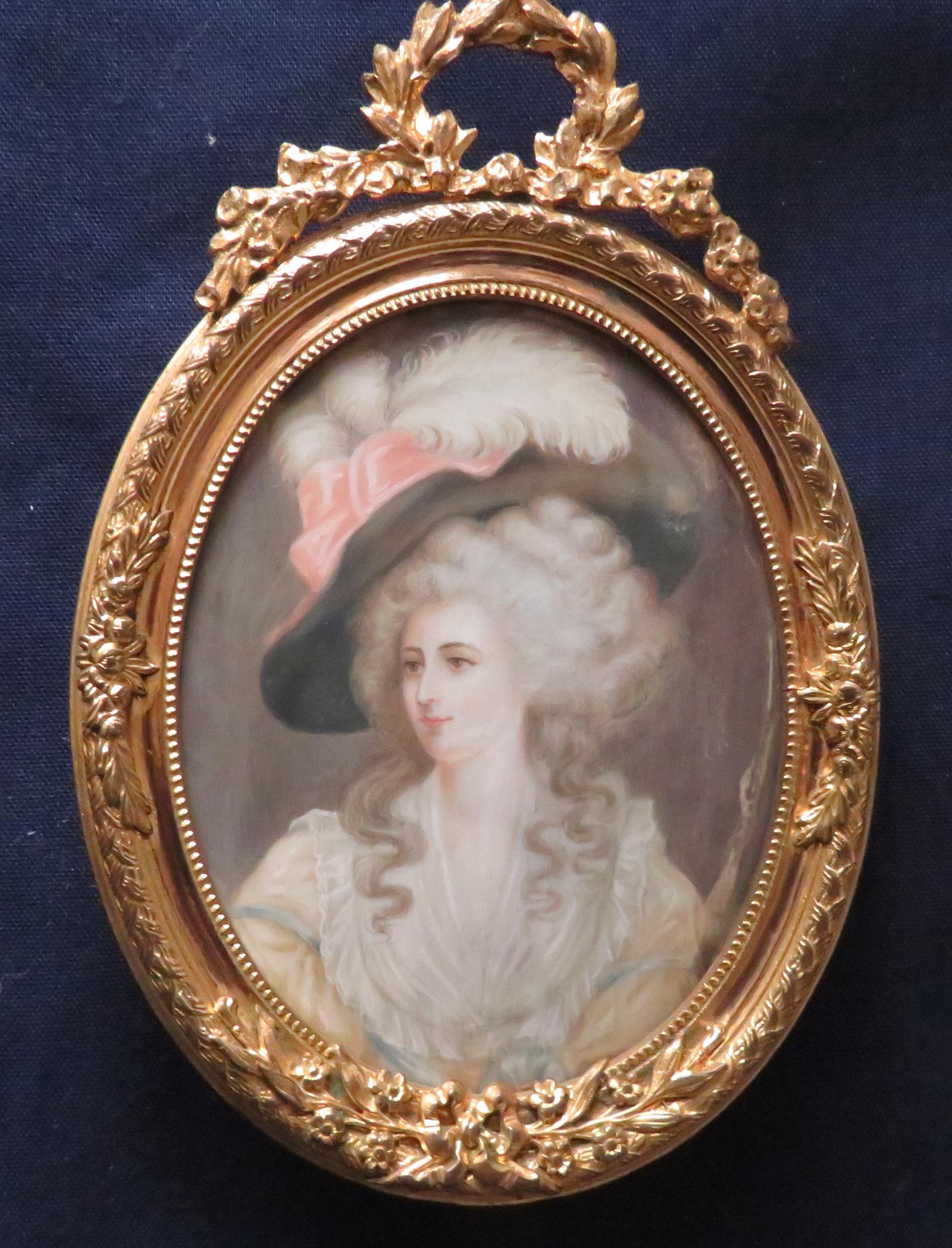 Miniature Portrait Duchess of Devonshire Ormolu Easel Backed Frame