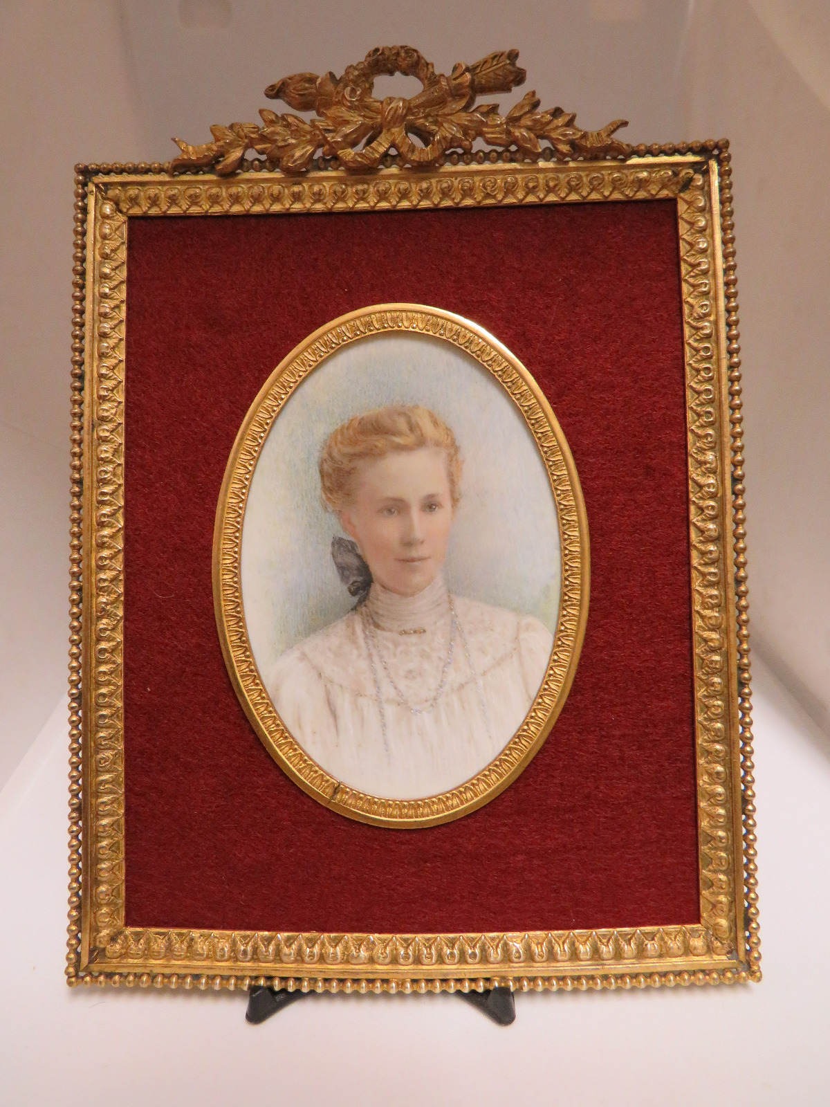 Miniature Portrait Edwardian Young Lady Ormolu Frame