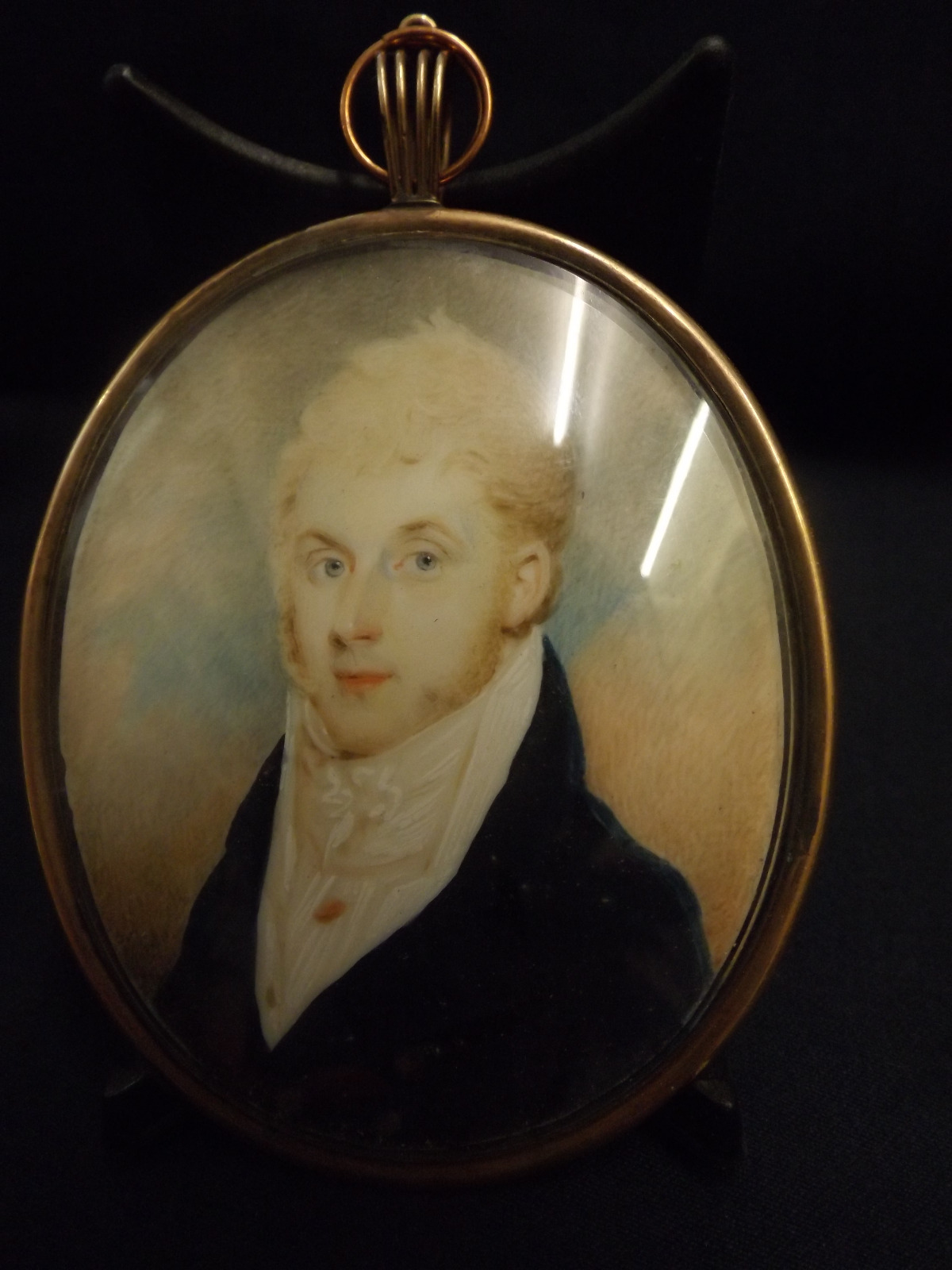 Miniature Portrait Hair Back Gold Initials Guilloche Enamel