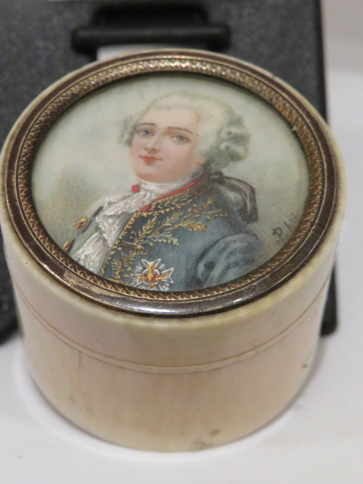 Miniature Portrait in Bone Pill Box of Louis XVI