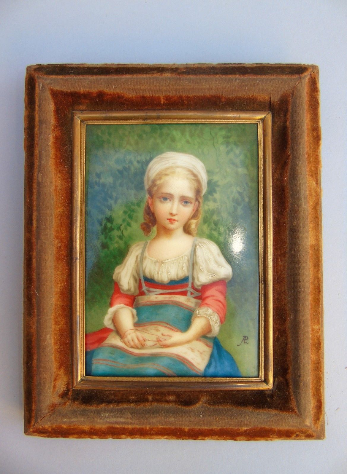 Miniature Portrait On Porcelain of Young Girl 19th Century