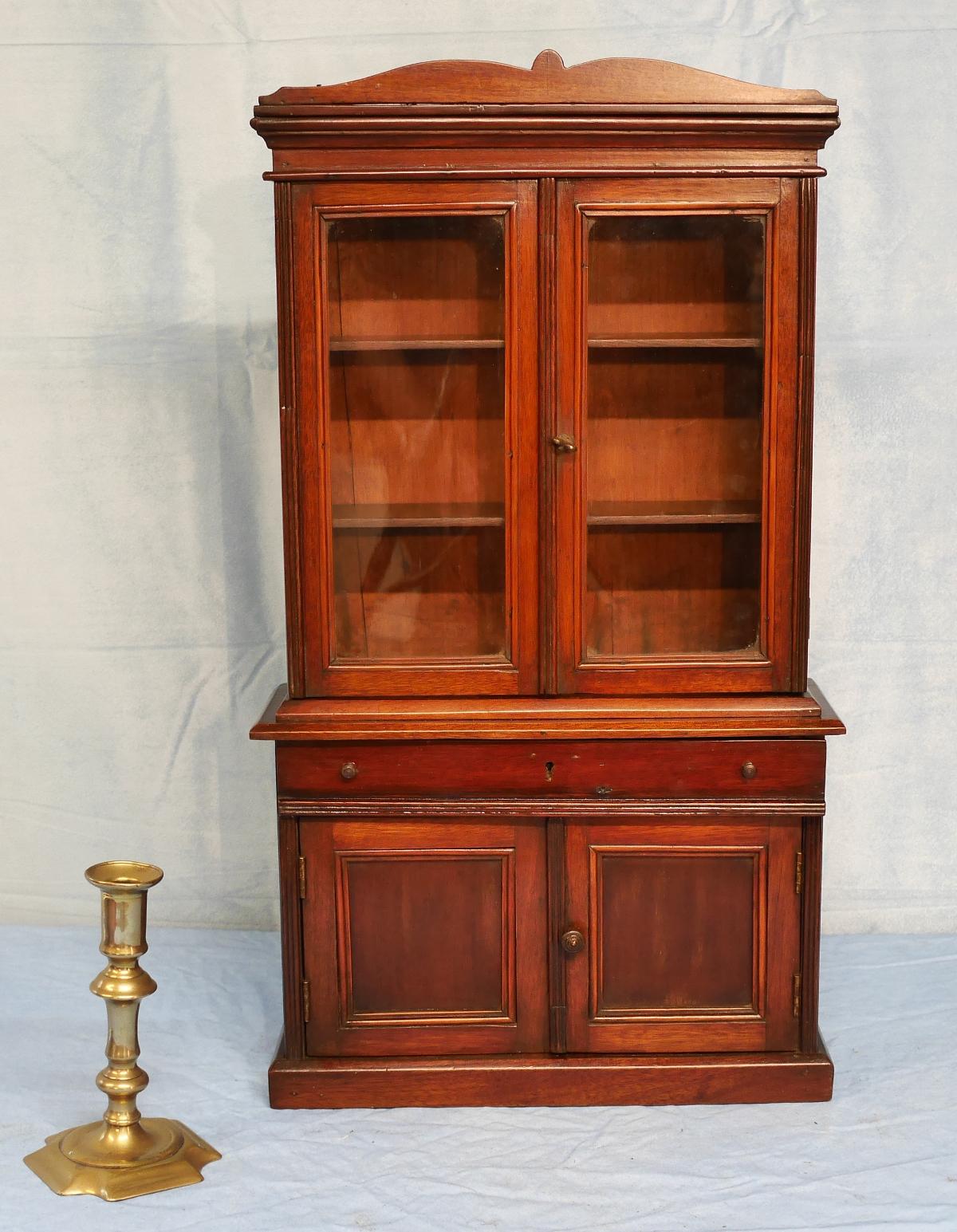 Miniature Victorian Mahogany Bookcase on Cupboard