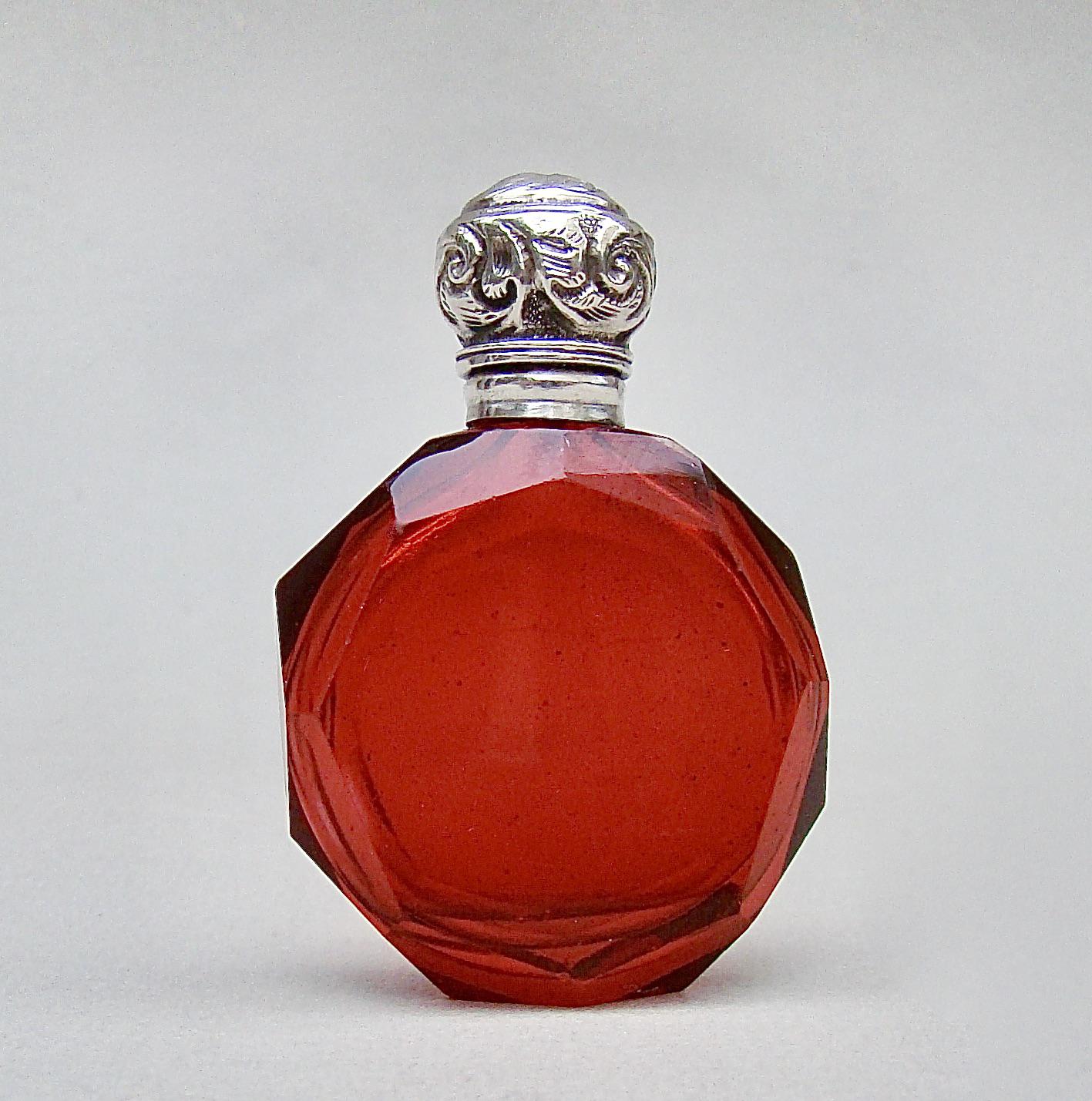 Miniature Victorian Silver & Cranberry Glass Scent Bottle c.1890