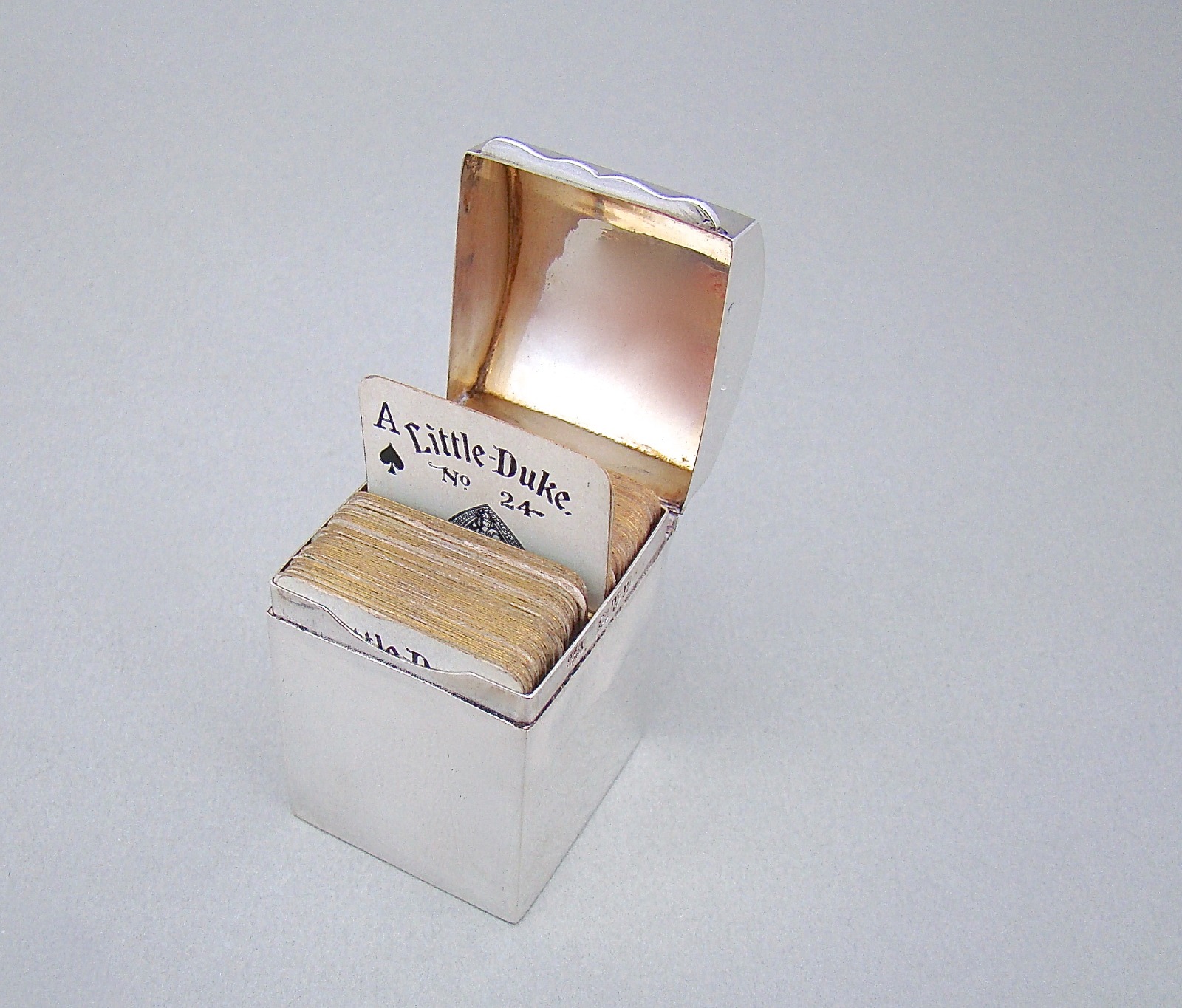 Miniature Victorian Silver Patience Card Box by Nathan & Hayes, Chester 1898