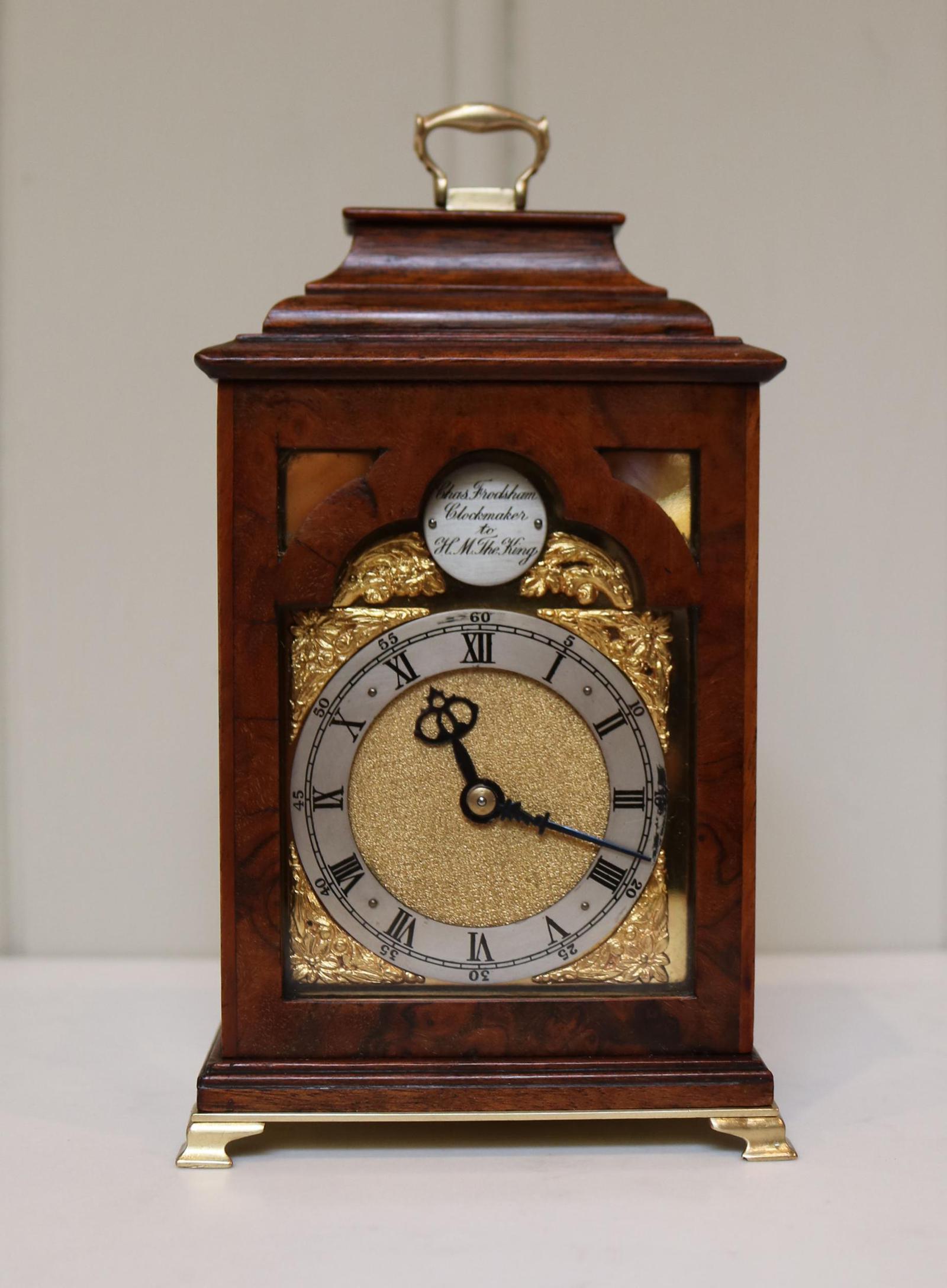 Miniature Walnut Bracket Clock by Clockmaker ro the King