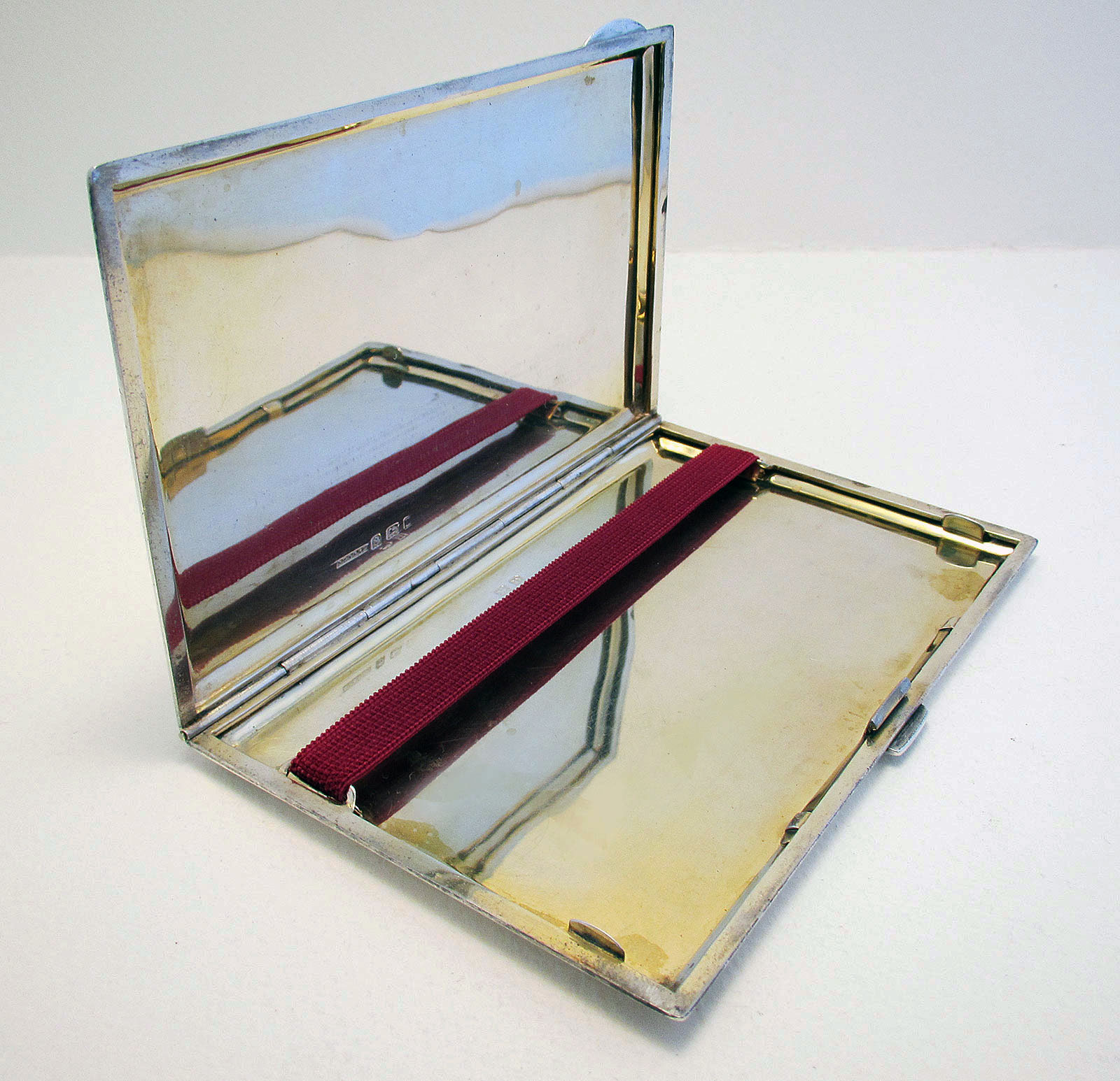 Minimalist 1928 Solid Sterling Silver 925 Cigarette Card Compact Case Box. English Birmingham Hallmarked. Plain Mirror Finish