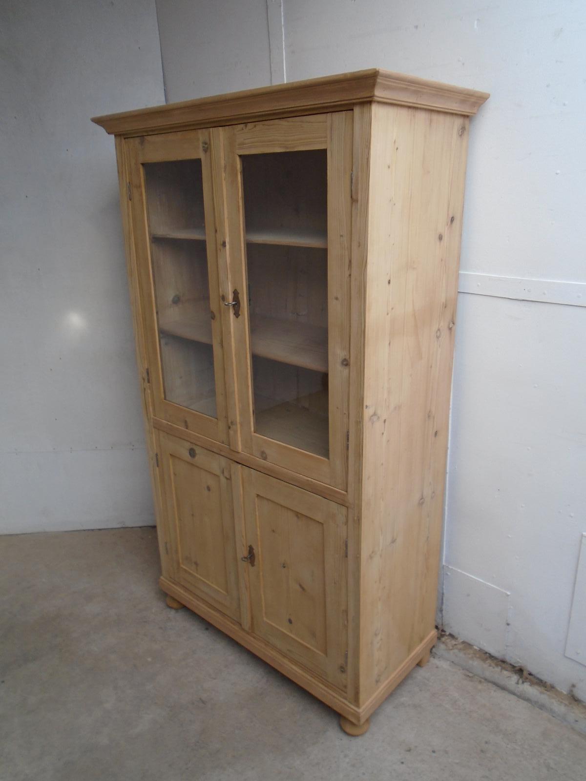 Mint Clean 4 Door 1 Piece Victorian Antique Pine Display Cabinet to wax / paint