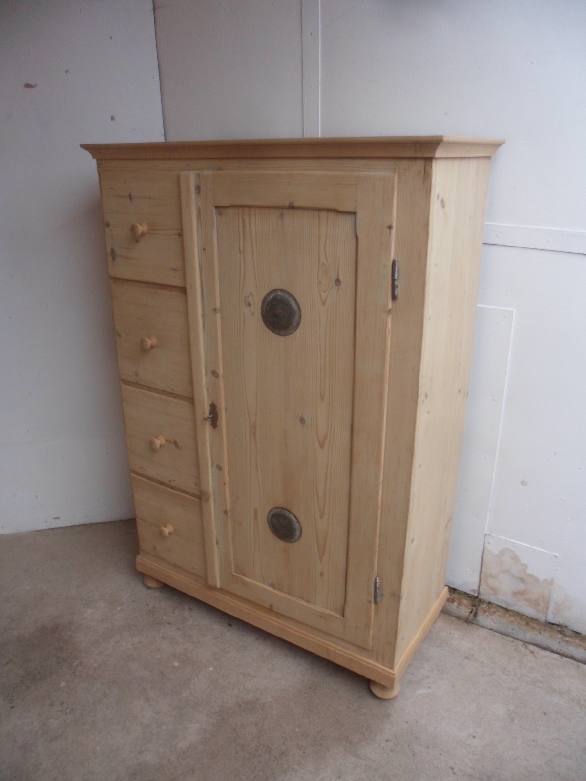 Mint Clean 4 Drawer 1 Door Old Pine Kitchen / Food Cupboard to wax / paint