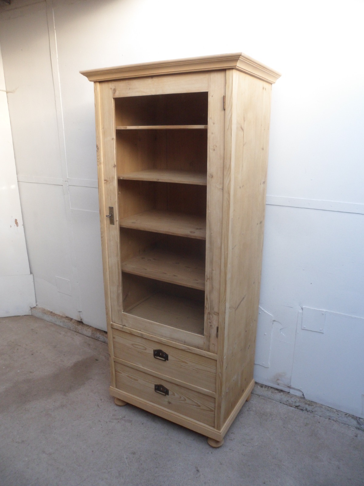 Mint Clean Old Pine 1 Door 2 Drawer Display Cabinet to wax / paint