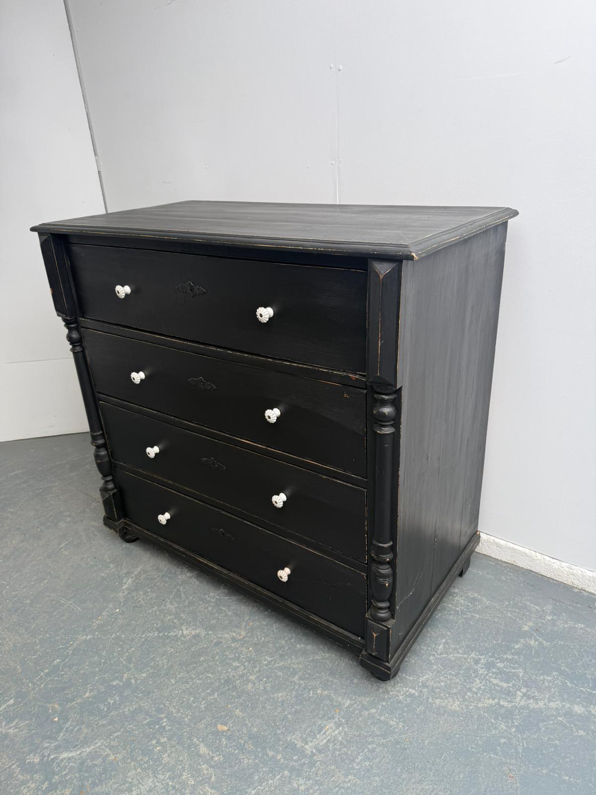 Mint Clean Painted Black Original Hungarian 4 Drawer Victorian Chest of Drawers
