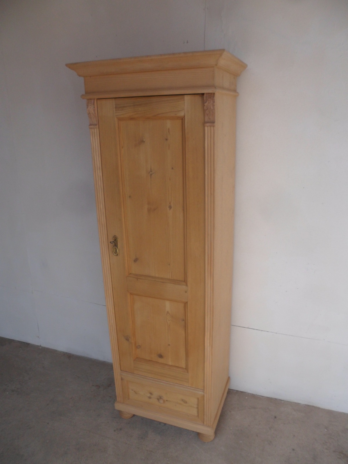 Mint Clean Tall Thin Pine 1 Door 1 Drawer Kitchen Storage Cupboard c.1920