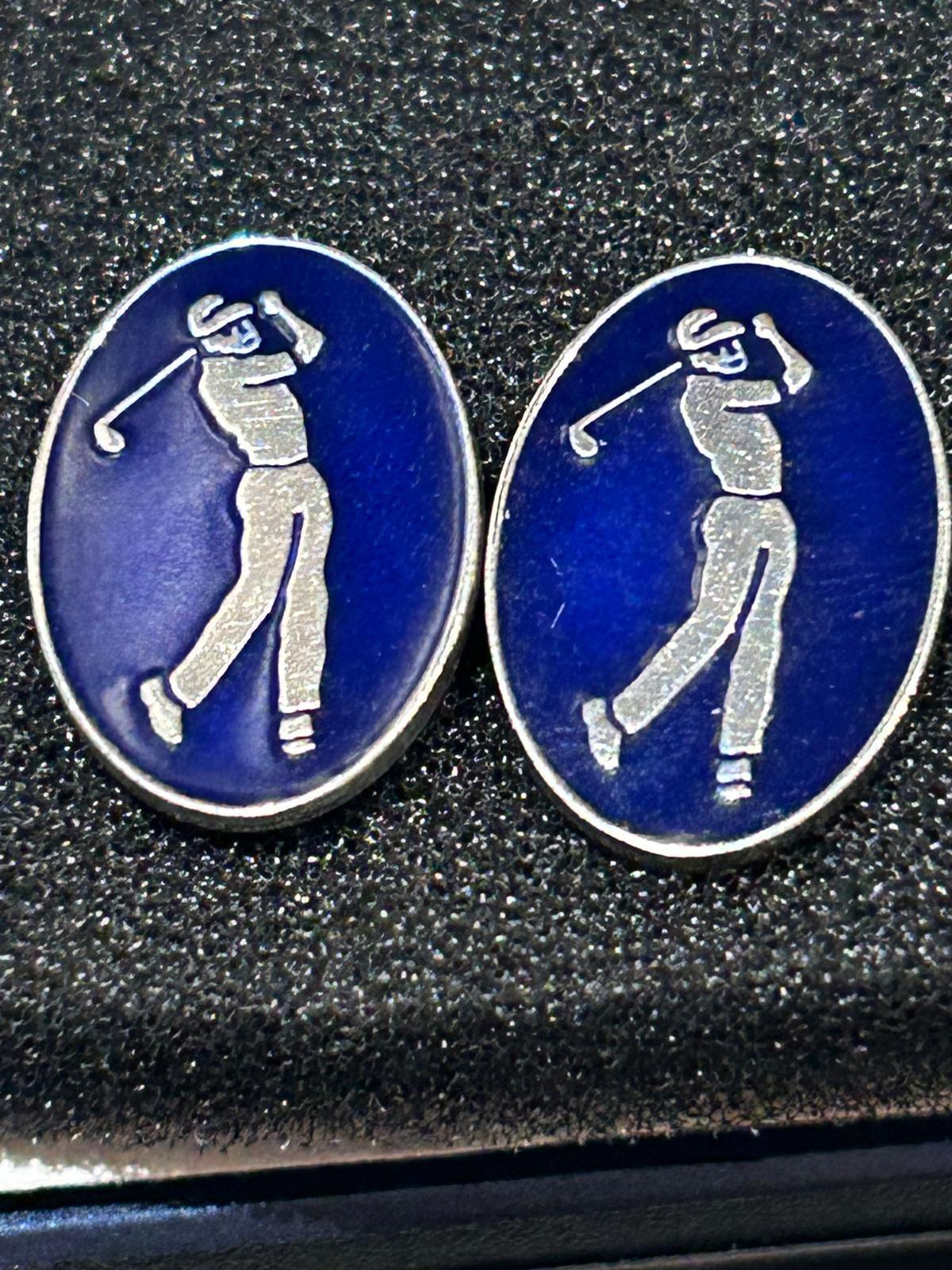 Mint Condition Sterling Silver & Blue Enamel Golfing Cufflinks 1970/1980