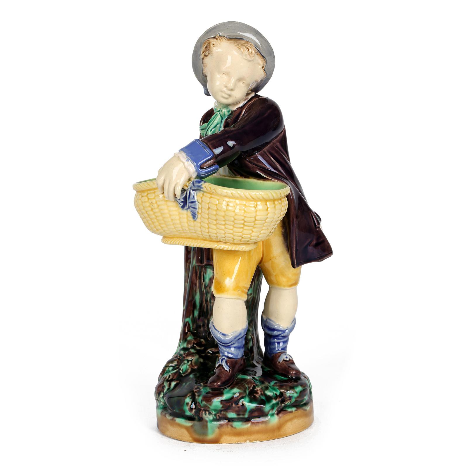 Minton Majolica Pottery Boy Holding a Basket Salt