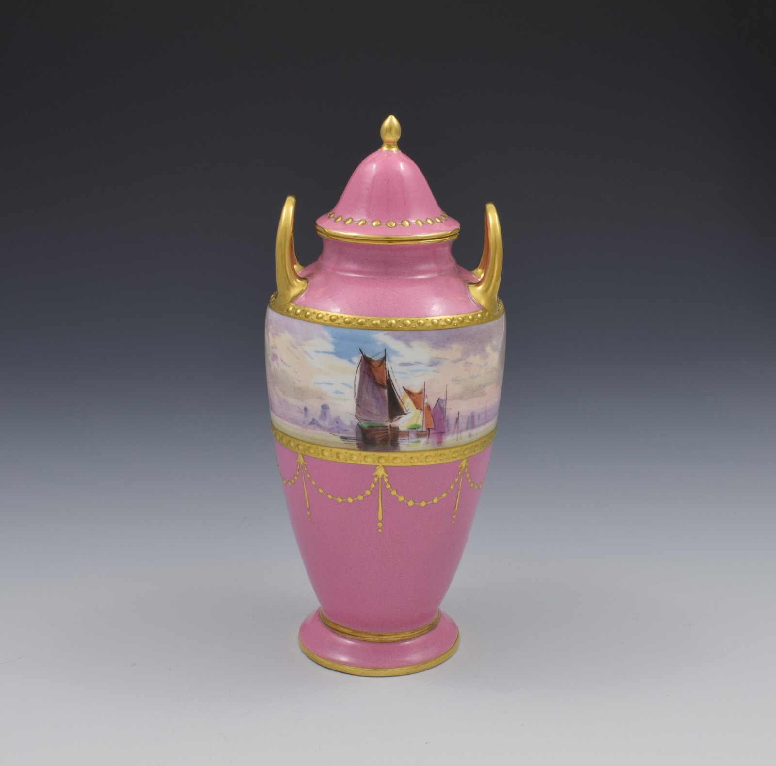 Minton Porcelain Pink Vase & Cover James Edwin Dean Seascape