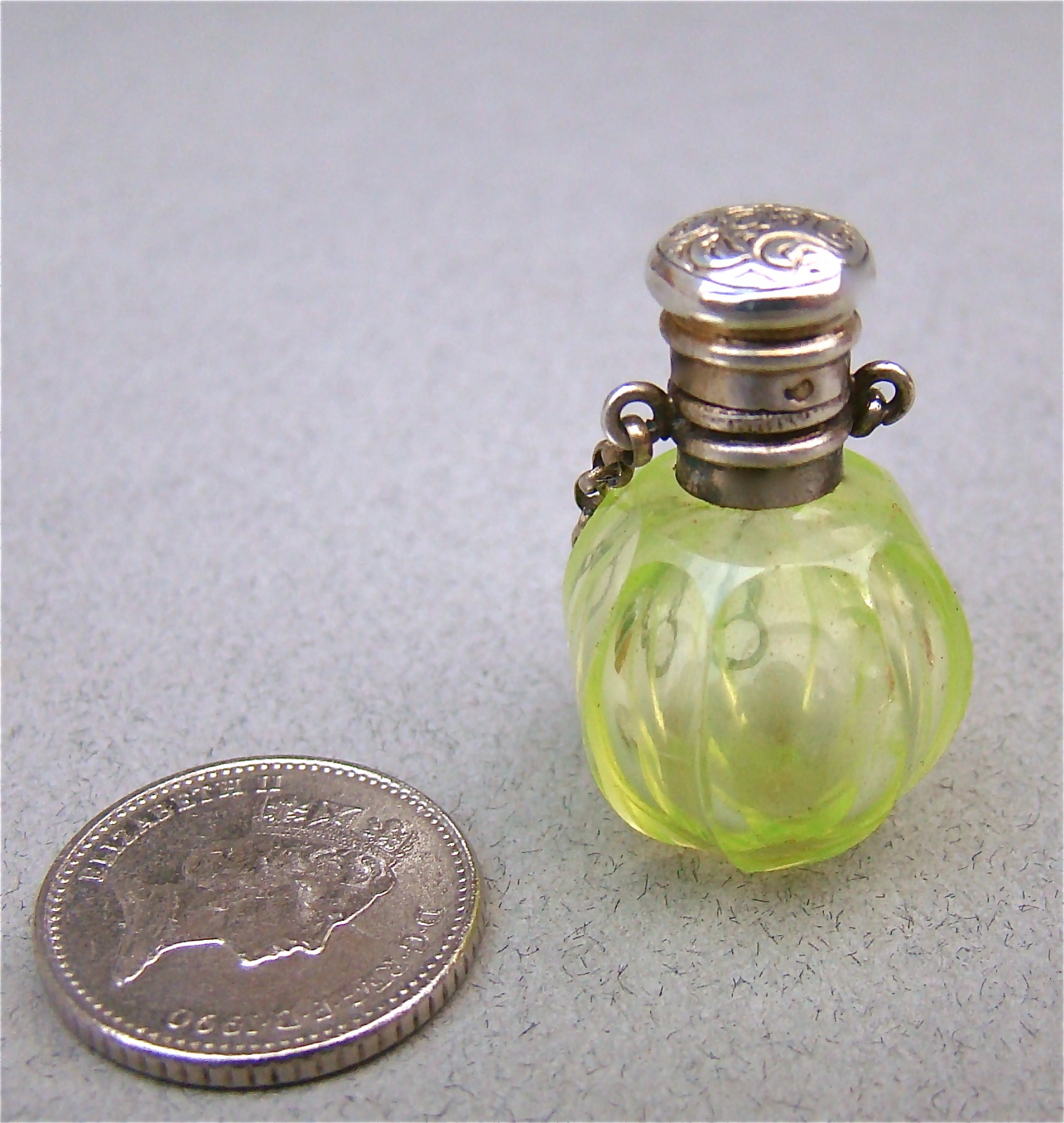 Minute 19th Century French Silver & Uranium Glass Chatelaine Scent Bottle c.1890