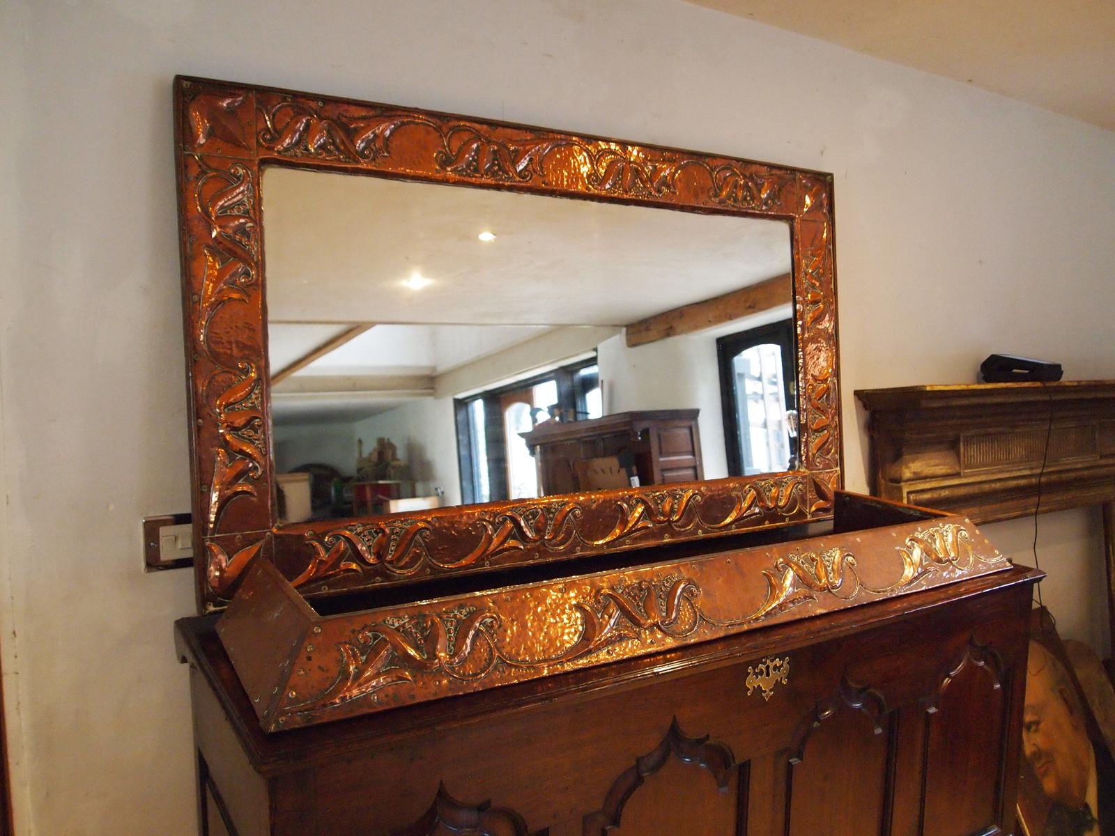Mirror Outstanding Rare Arts and Crafts Newlyn Manner Matching Fire Kerb c.1890