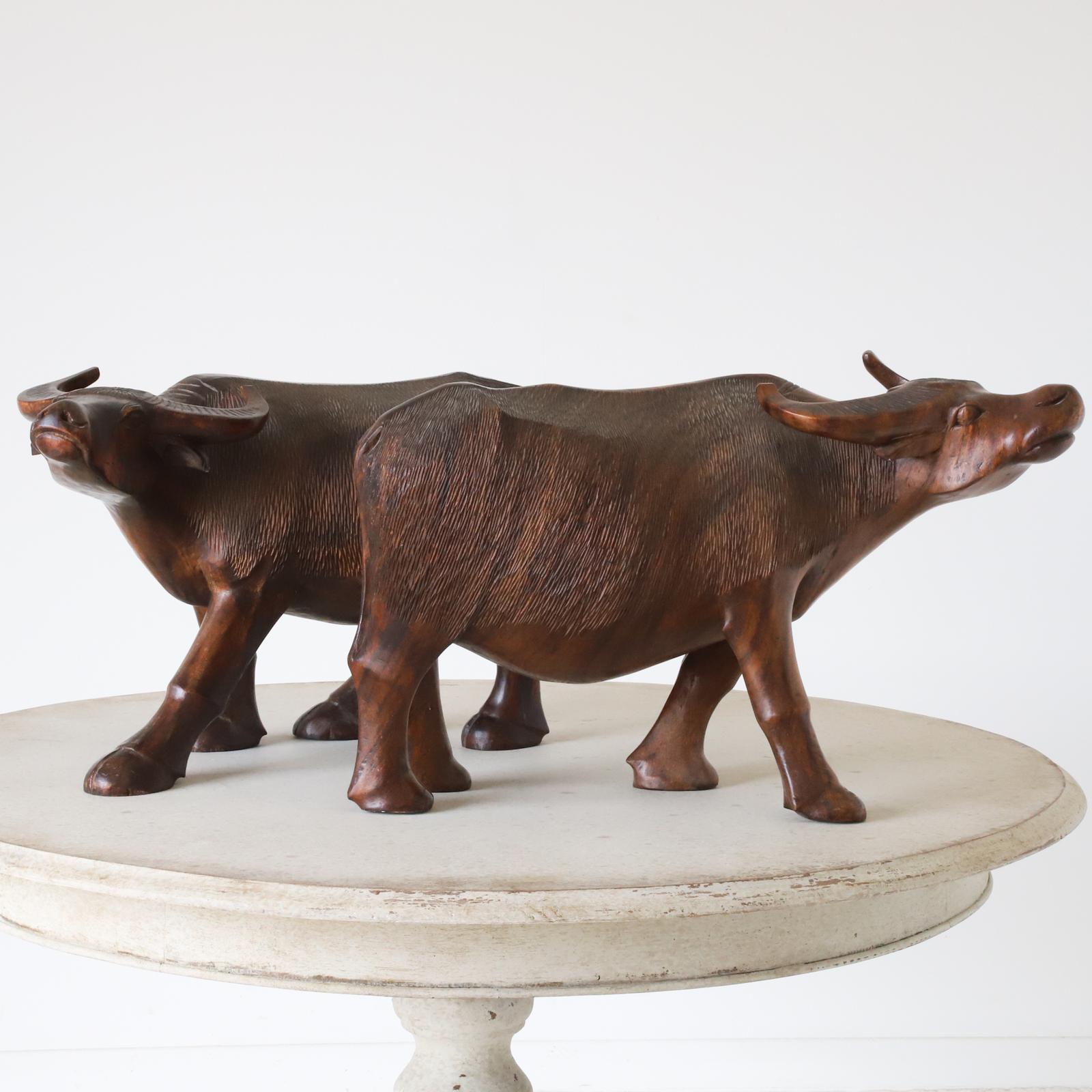 Mirror Pair of Carved Hardwood Water Buffalo (1 of 12)