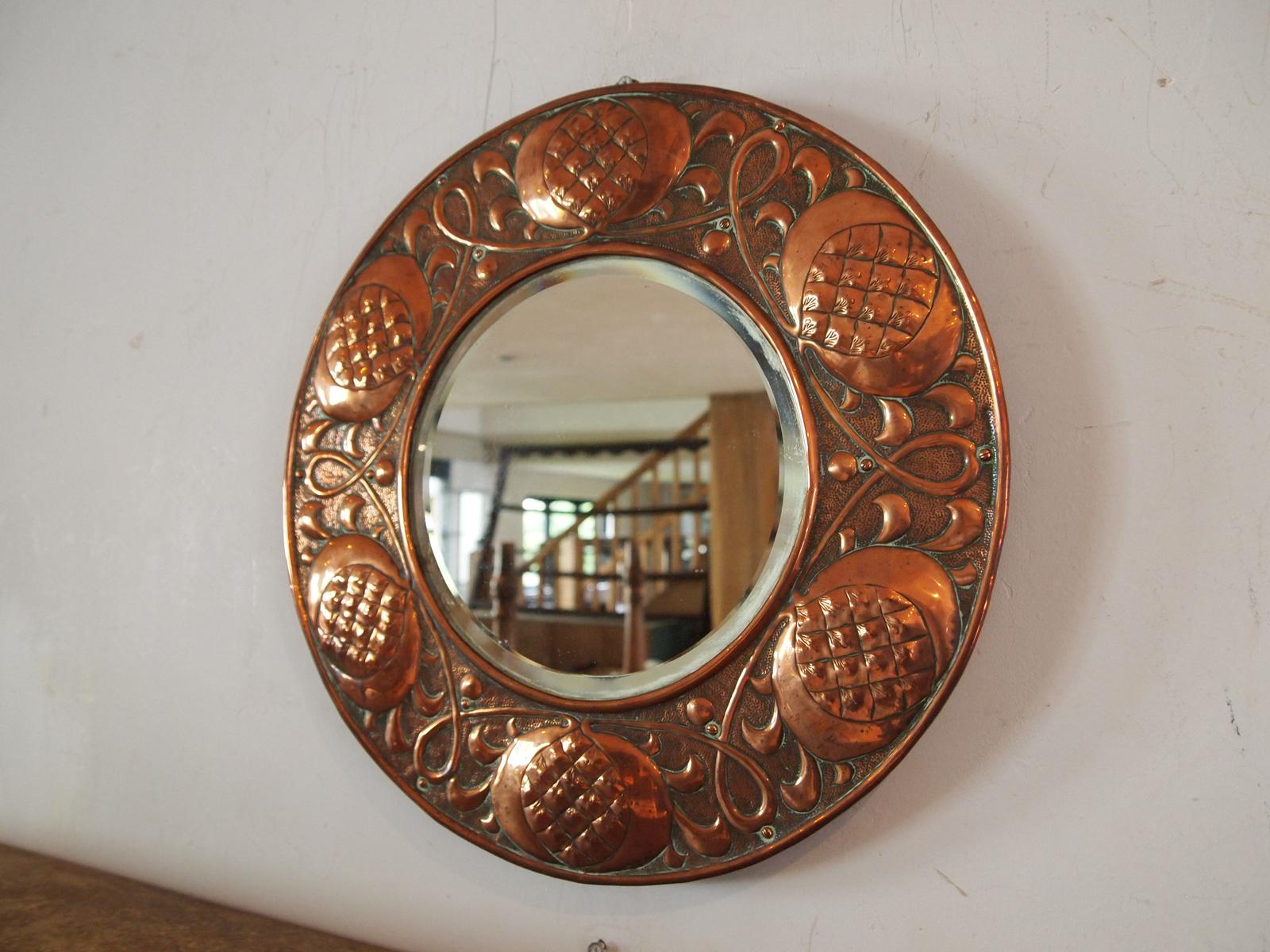 Mirror Rare Arts & Crafts Copper Stamped W H Mawson Keswick c.1905