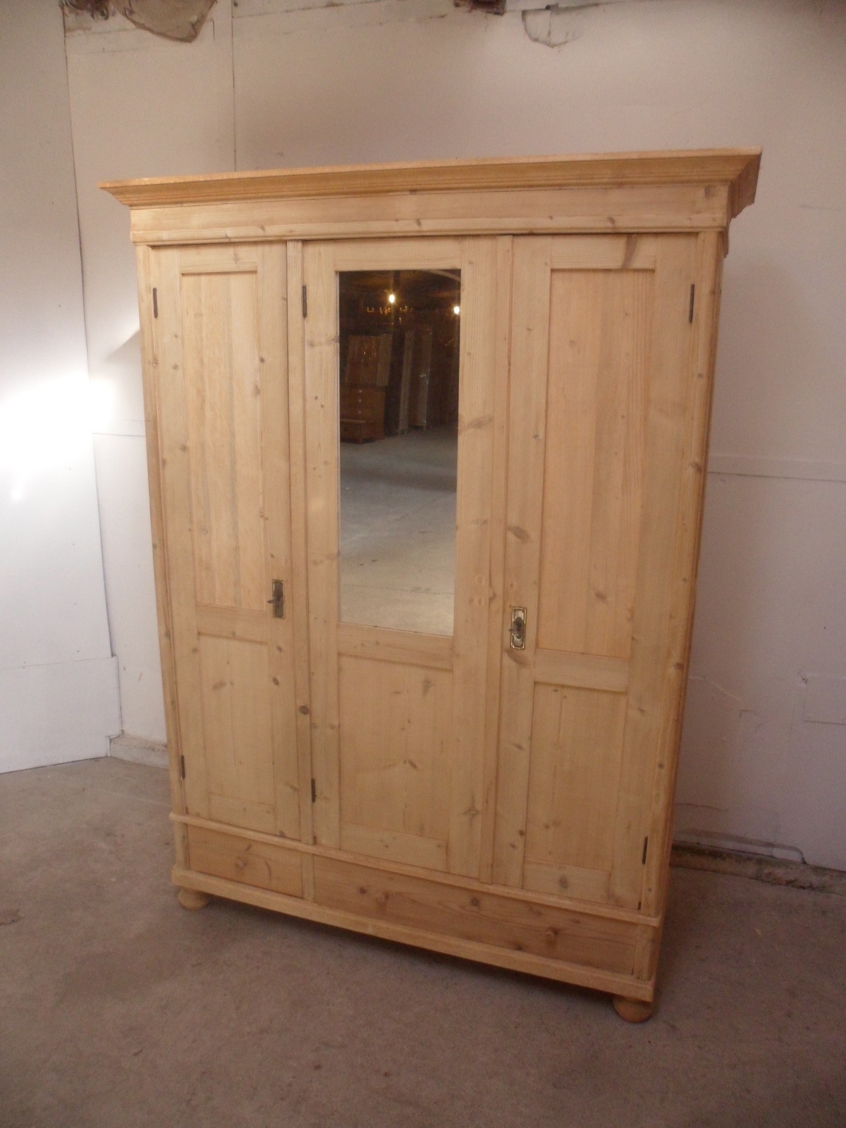 Mirrored Antique Pine Triple 3 Door Large Knockdown Wardrobe to Wax / Paint