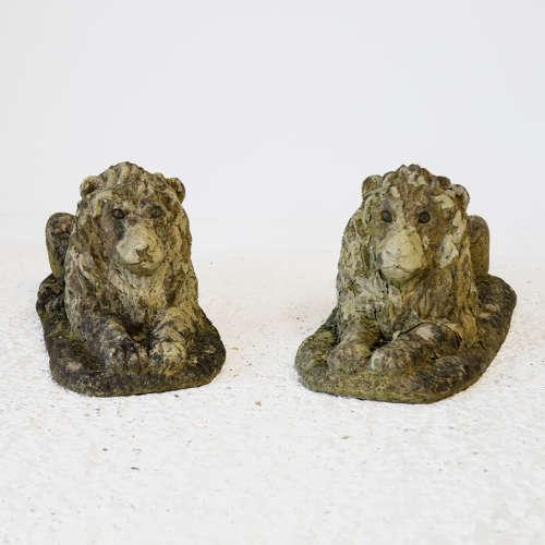 Mirrored Pair of Vintage Well Weathered Recumbent Lions (1 of 15)