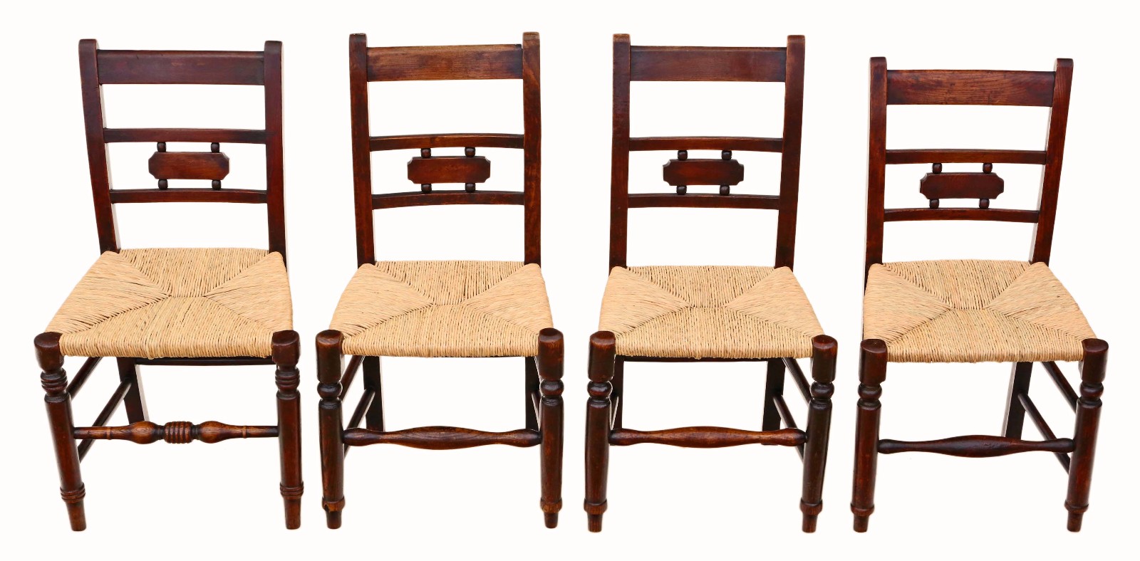 Mixed Set of 4 Elm 19th Century Kitchen Dining Chairs