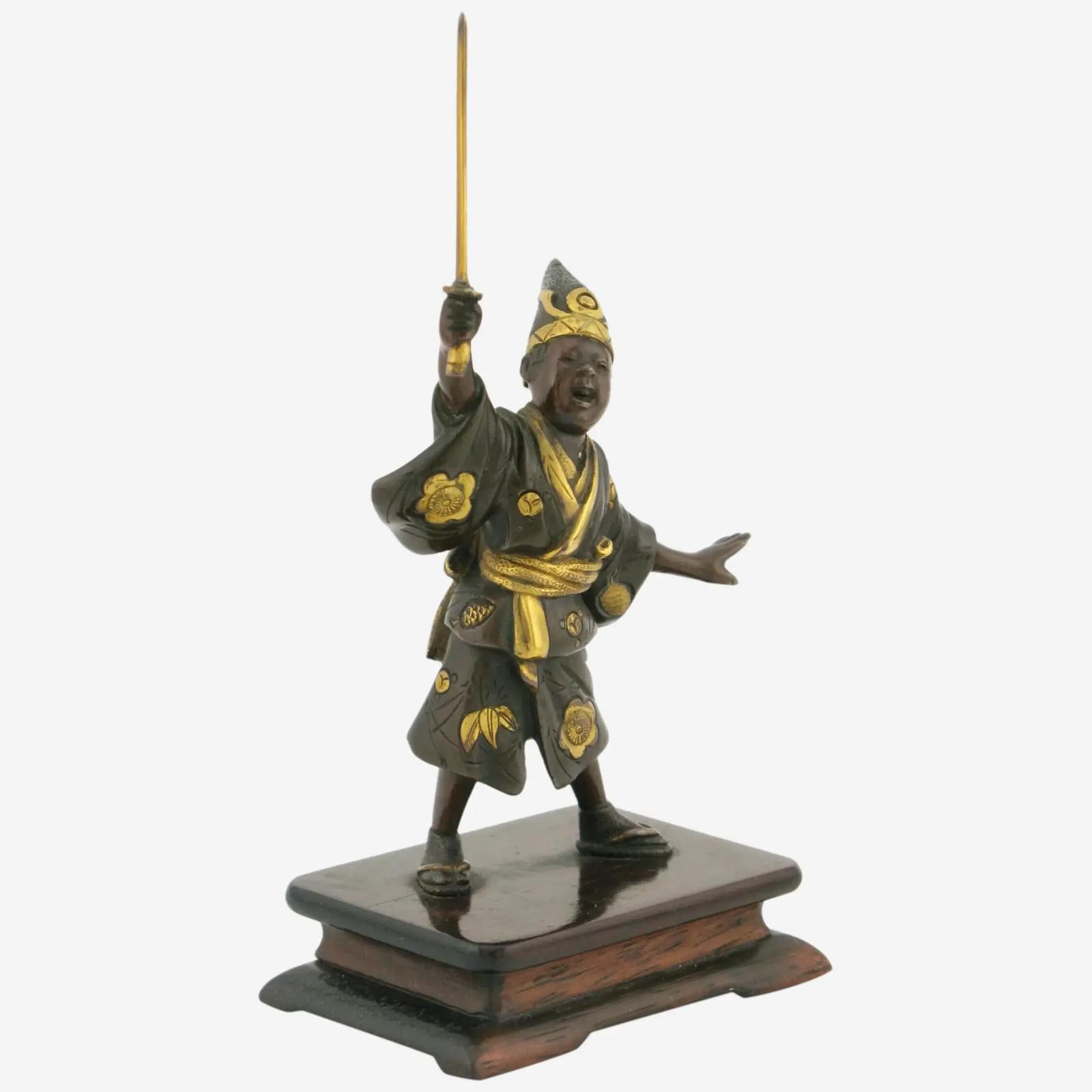 Miyao Eisuke Meiji Japanese Gilt Bronze Okimono Warrior