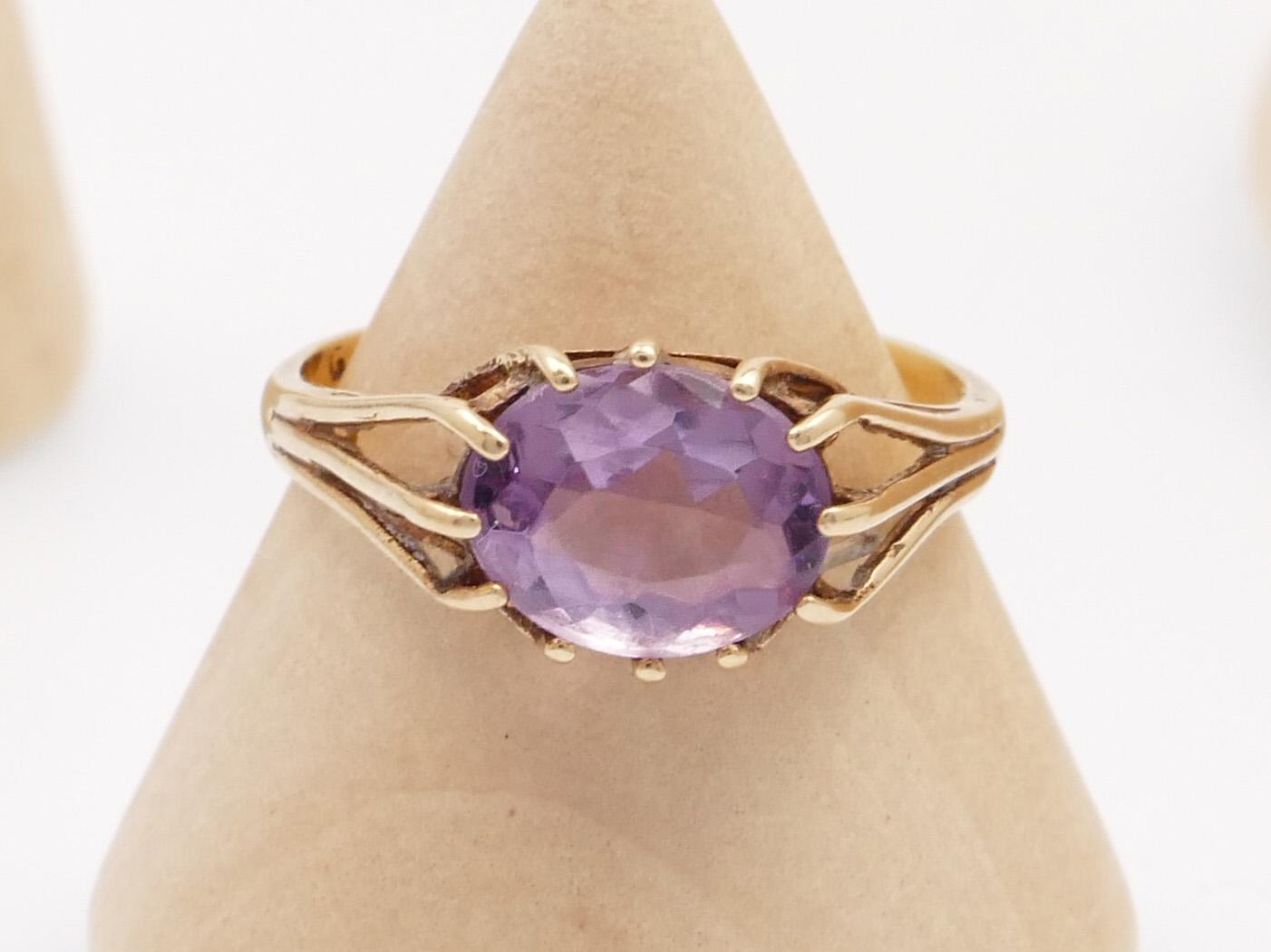 Modernist Gold Ring with Violet Kunzite Hallmarked 1971