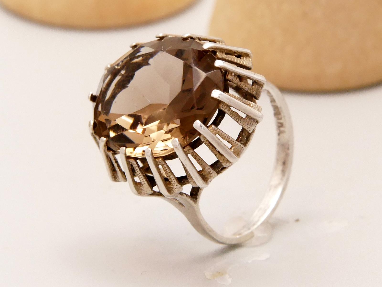 Modernist Silver Cocktail Ring with Large Smoky Quartz