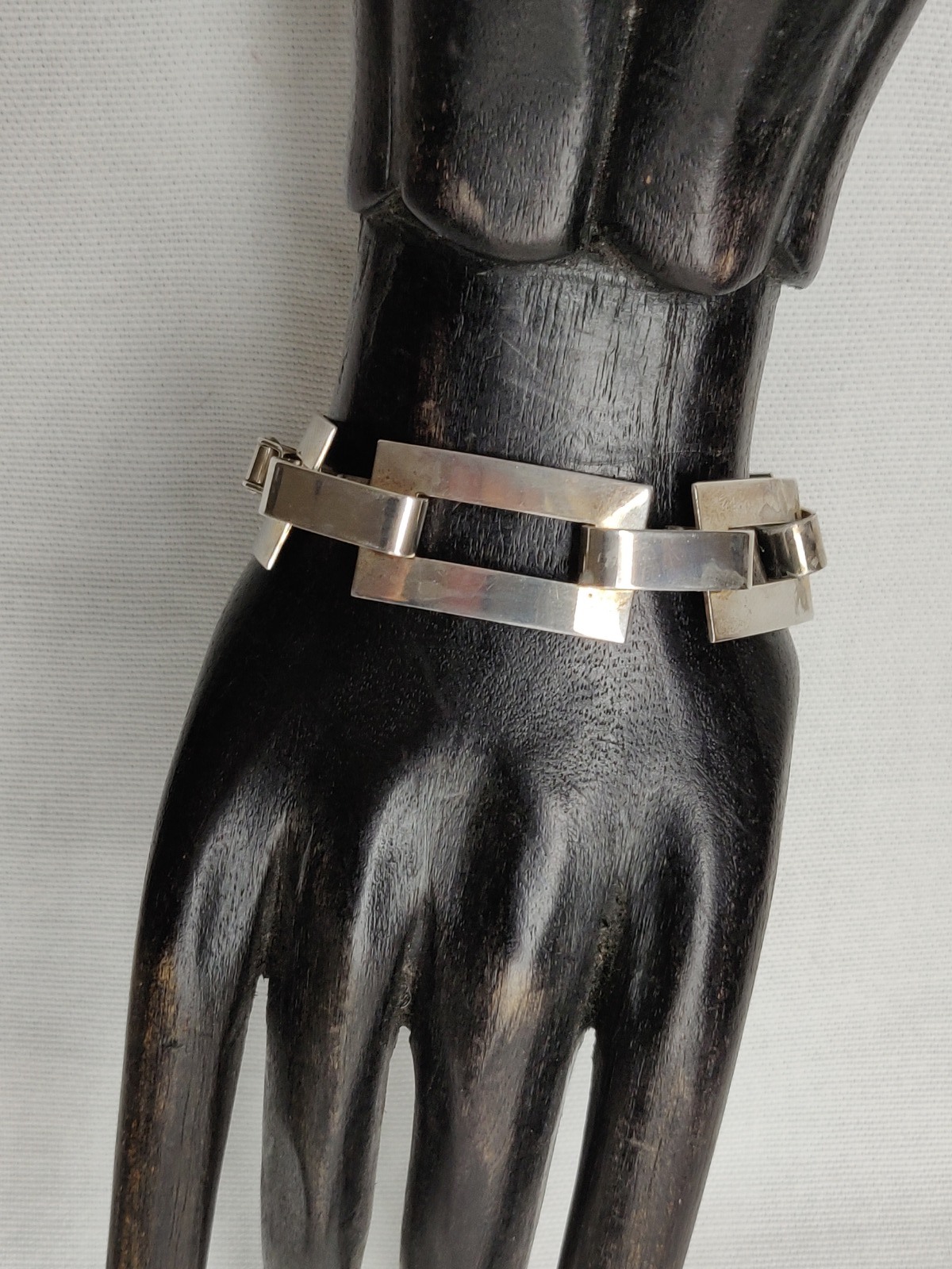 Modernist Sterling Silver 925 Bracelet London 1974 Signed FM
