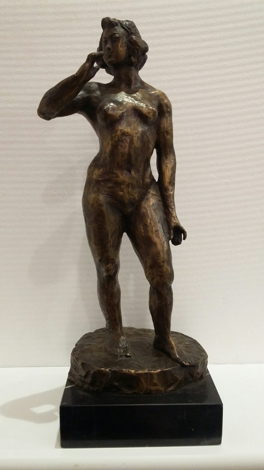 Modernist Style Bronze Nude Female On Marble Base - Indistinctly Signed
