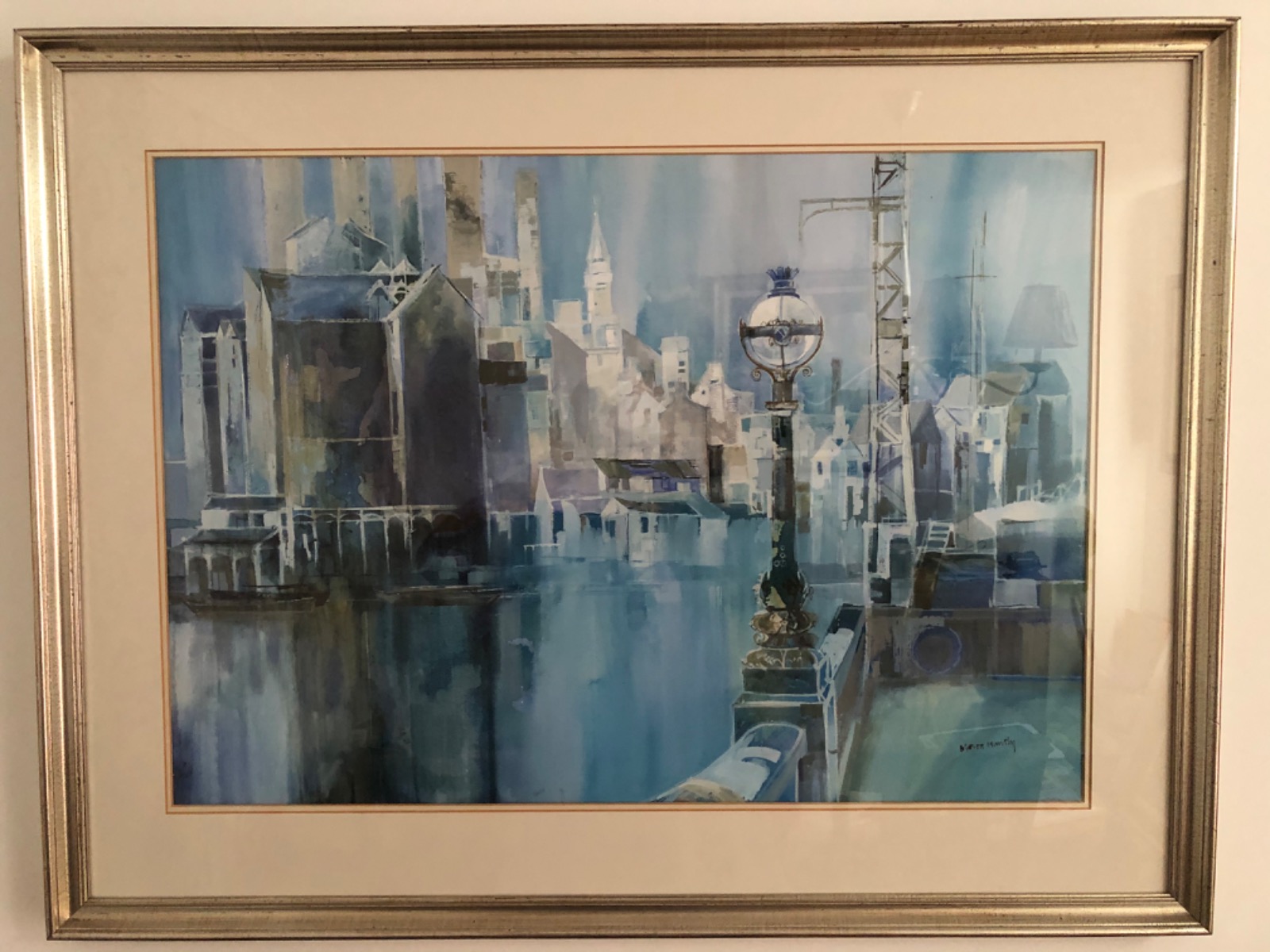 Moira Huntly Original Watercolour & Gouache Painting with Mall Galleries Exhibition Label Verso