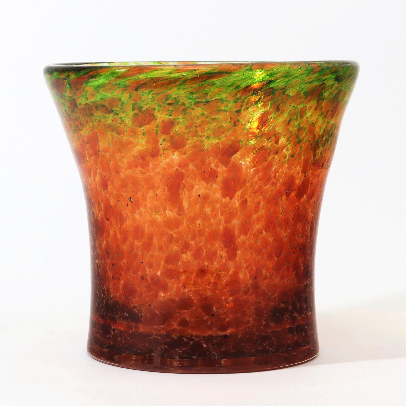 Monart Art Deco Tangerine & Lime Waisted Glass Vase with Aventurine c.1935