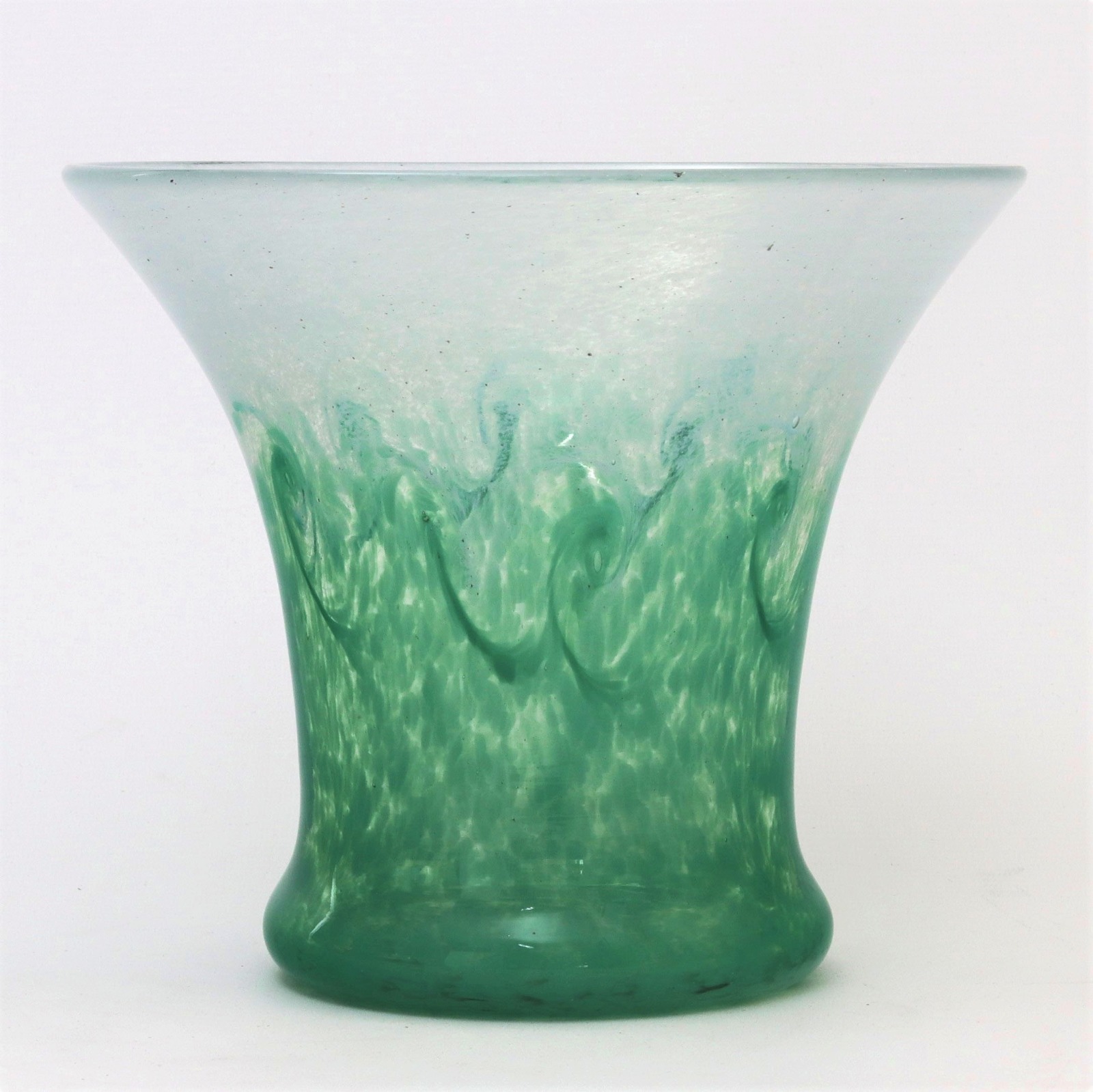Monart Glass Vase in Sea-Green & Pale Blue with Whirls 1930s