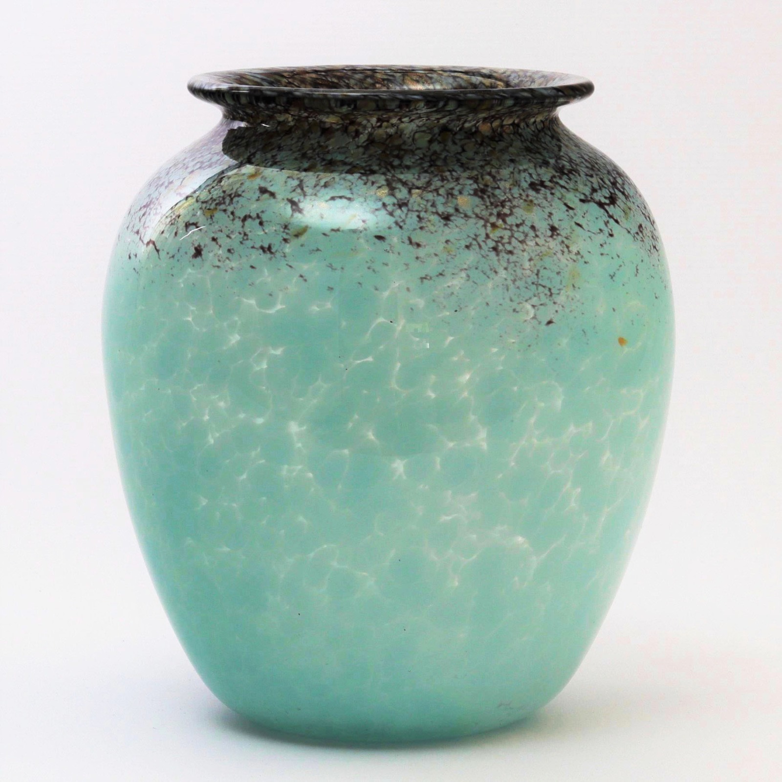 Monart Sky Blue Baluster Glass Vase with Gold Aventurine C.1930 (1 of 1)