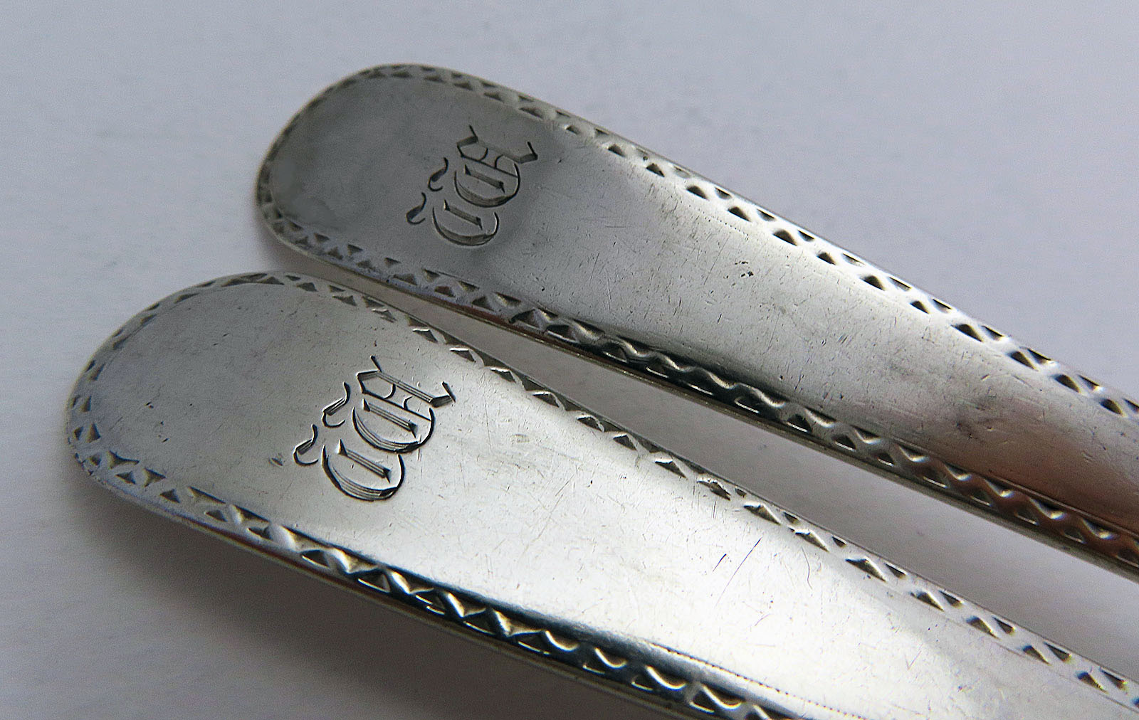 Monogram "W" 1774 Large & Heavy Pair, Georgian George III Bright-Cut Solid Sterling Silver Antique Table/Serving Spoons, English Hallmarked (1 of 9)