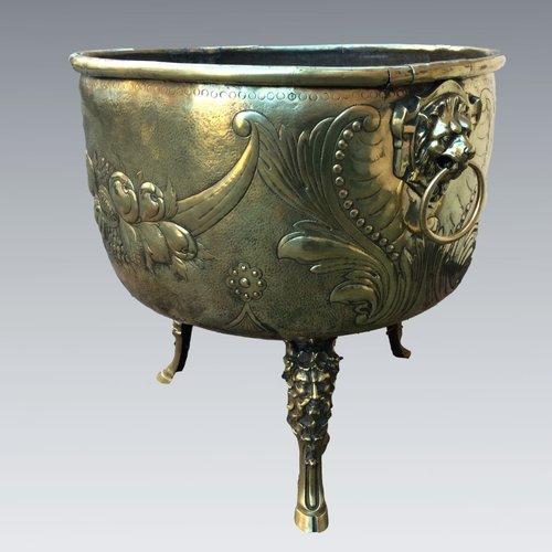 Monumental 19th Century Repoussé Brass Log Bin, Dutch