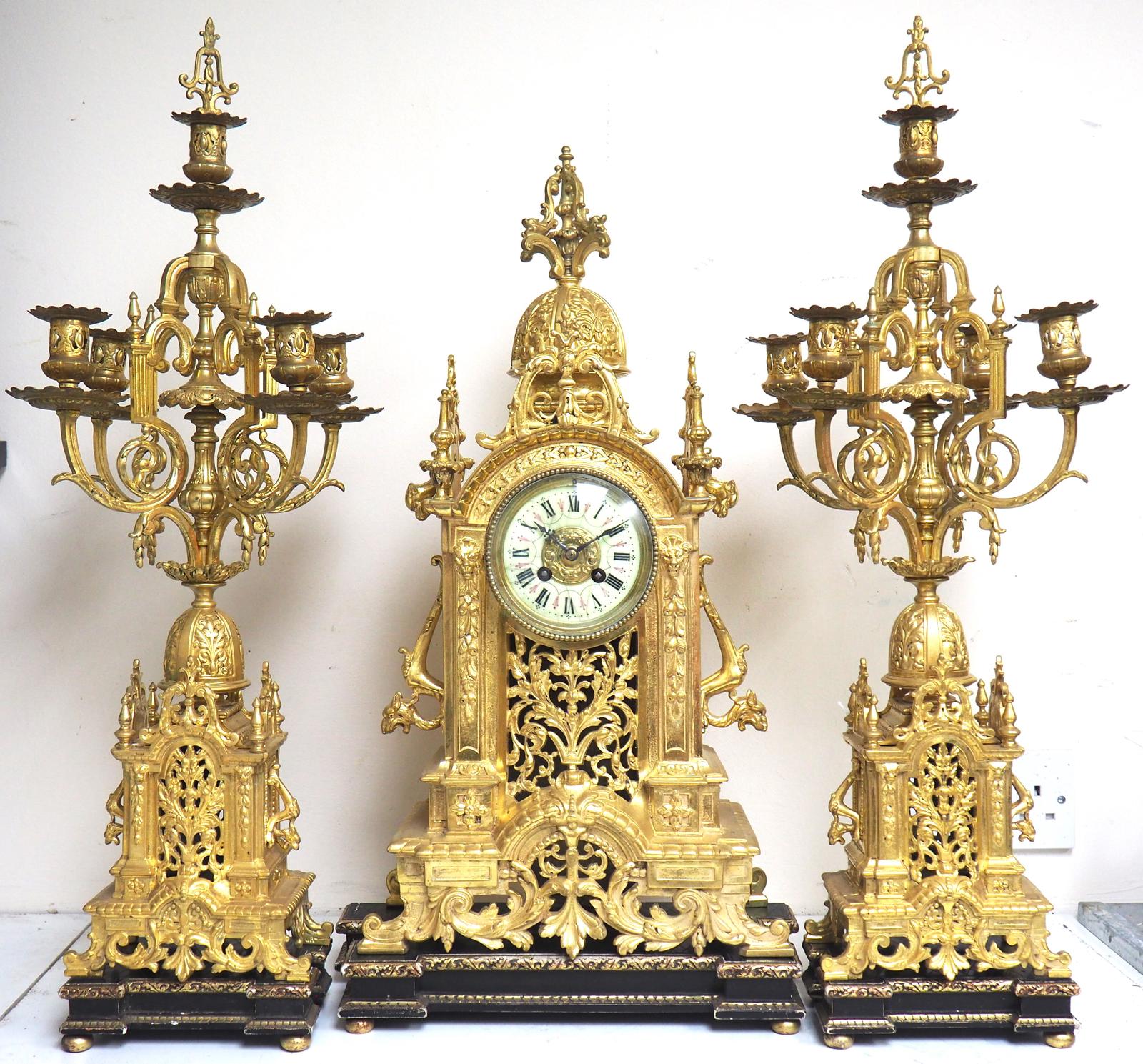 Monumental French Ormolu Bronze Candelabra Mantel Clock Set Solid Bronze Mantle Striking 8-day Clock c.1850 (1 of 14)