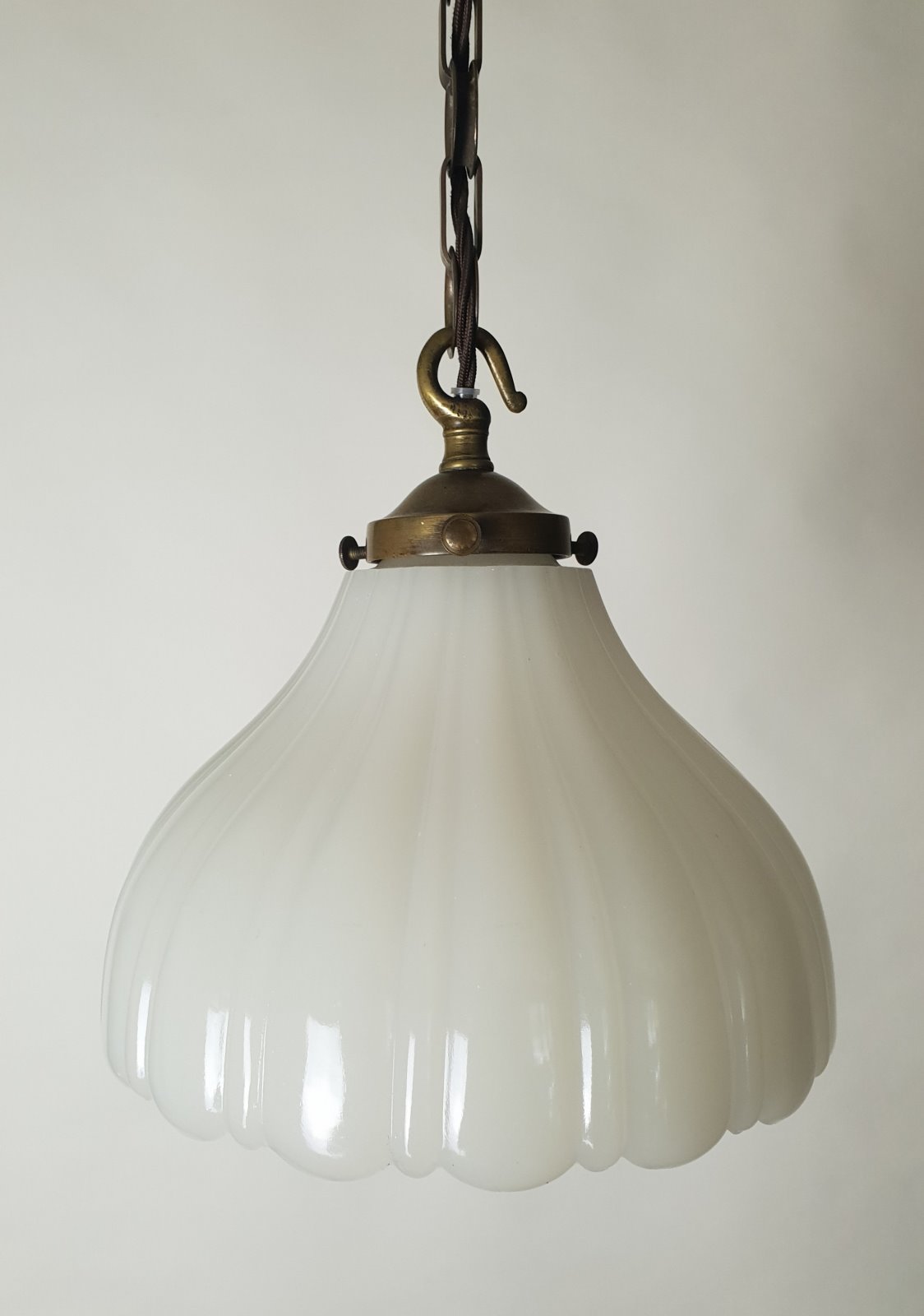 Moonstone Ceiling Light with Original Aged Brass Gallery, Rewired