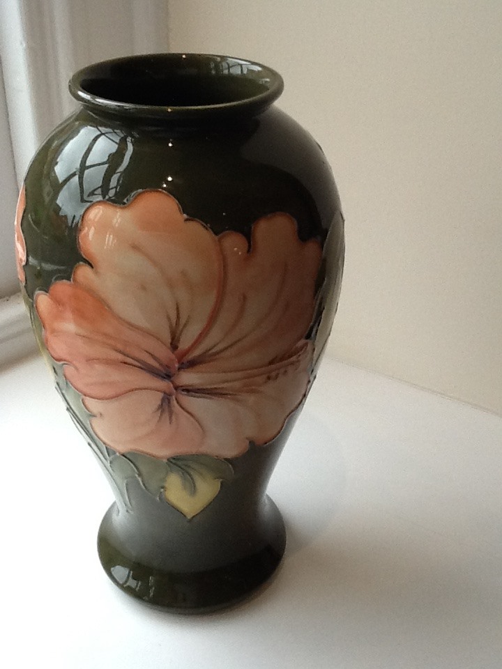 Moorcroft Coral Hibiscus Green Ground Large Vase