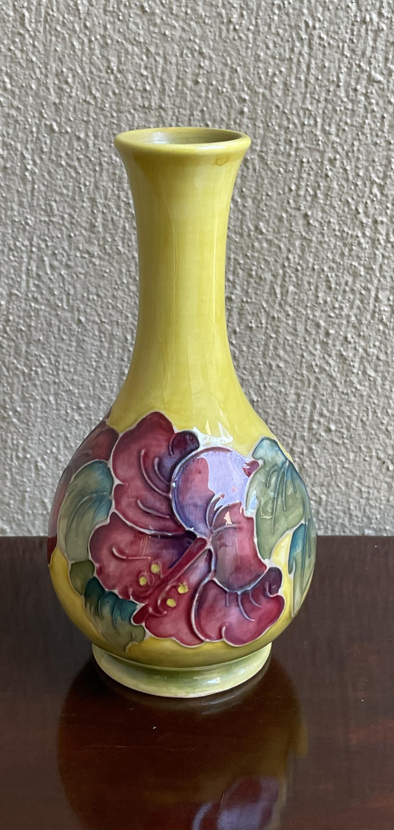 Moorcroft Hibiscus Posy Vase on Yellow Background