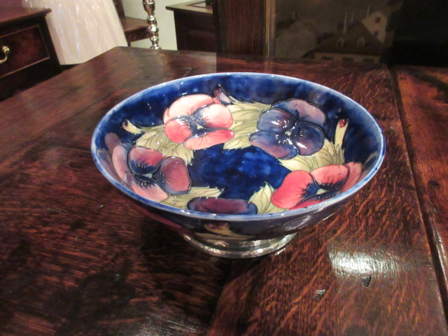 Moorcroft Liberty's Pansy Pewter Base Bowl c.1920