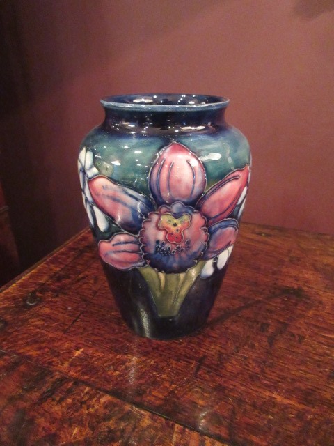 Moorcroft Slipper Orchid on Blue Vase