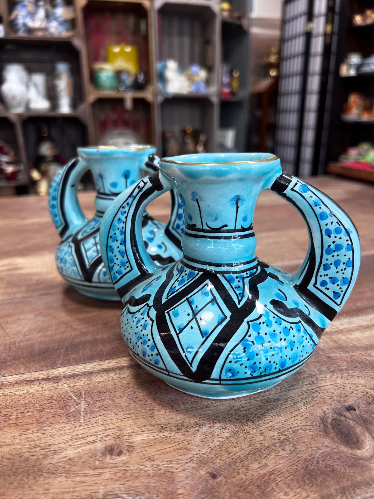 Moorish Hand-painted Tunisian Vases by Azouz Kharraz