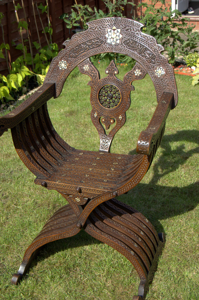 Moorish Savonarola Mother of Pearl Inlaid Chair