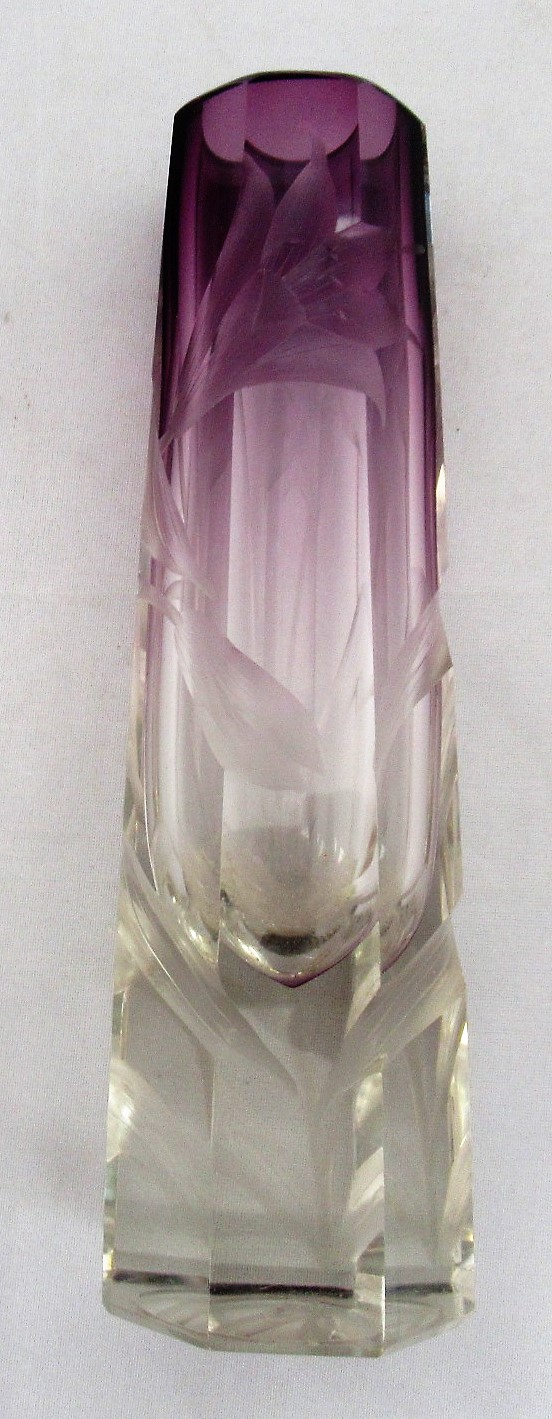 Moser Karlsbad Faceted & Deeply Etched Posy Vase