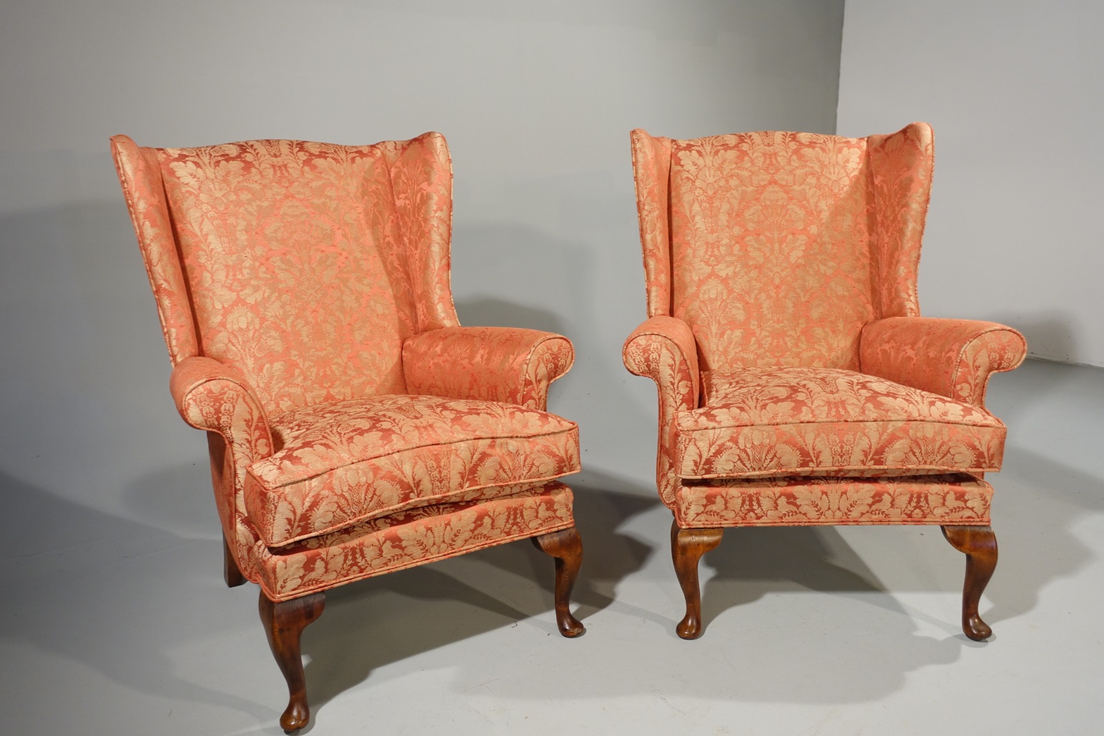 Most Attractive Pair of George II Style Walnut Framed Wing Chairs