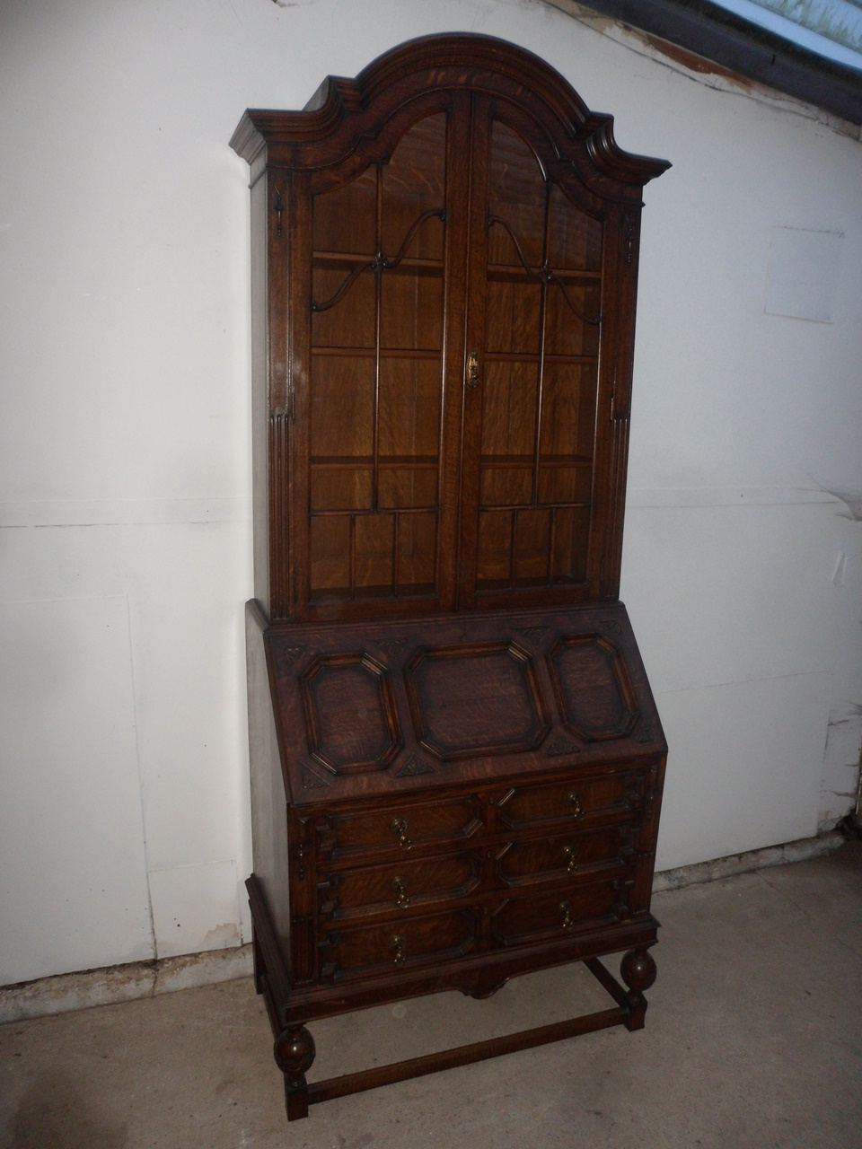 Most Wonderful 1920s Golden Oak 2 Piece Bureau Bookcase