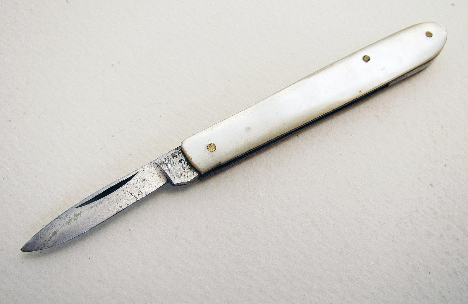 Mother of Pearl Carbon Steel Pocket English Sheffield Folding Fruit Penknife c.1920
