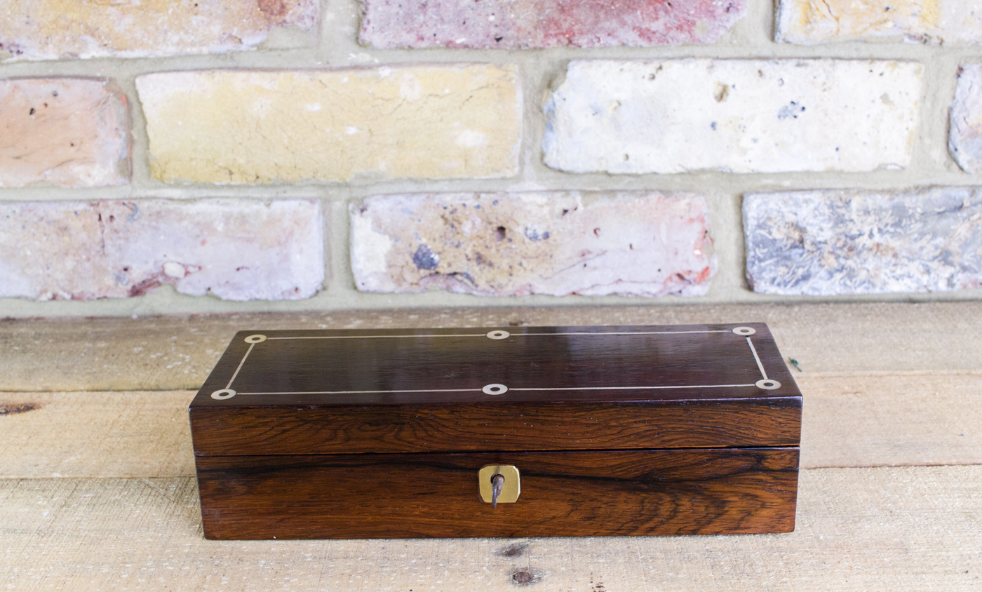 Mother of Pearl & Pewter Rosewood Table Box c.1840 (1 of 1)